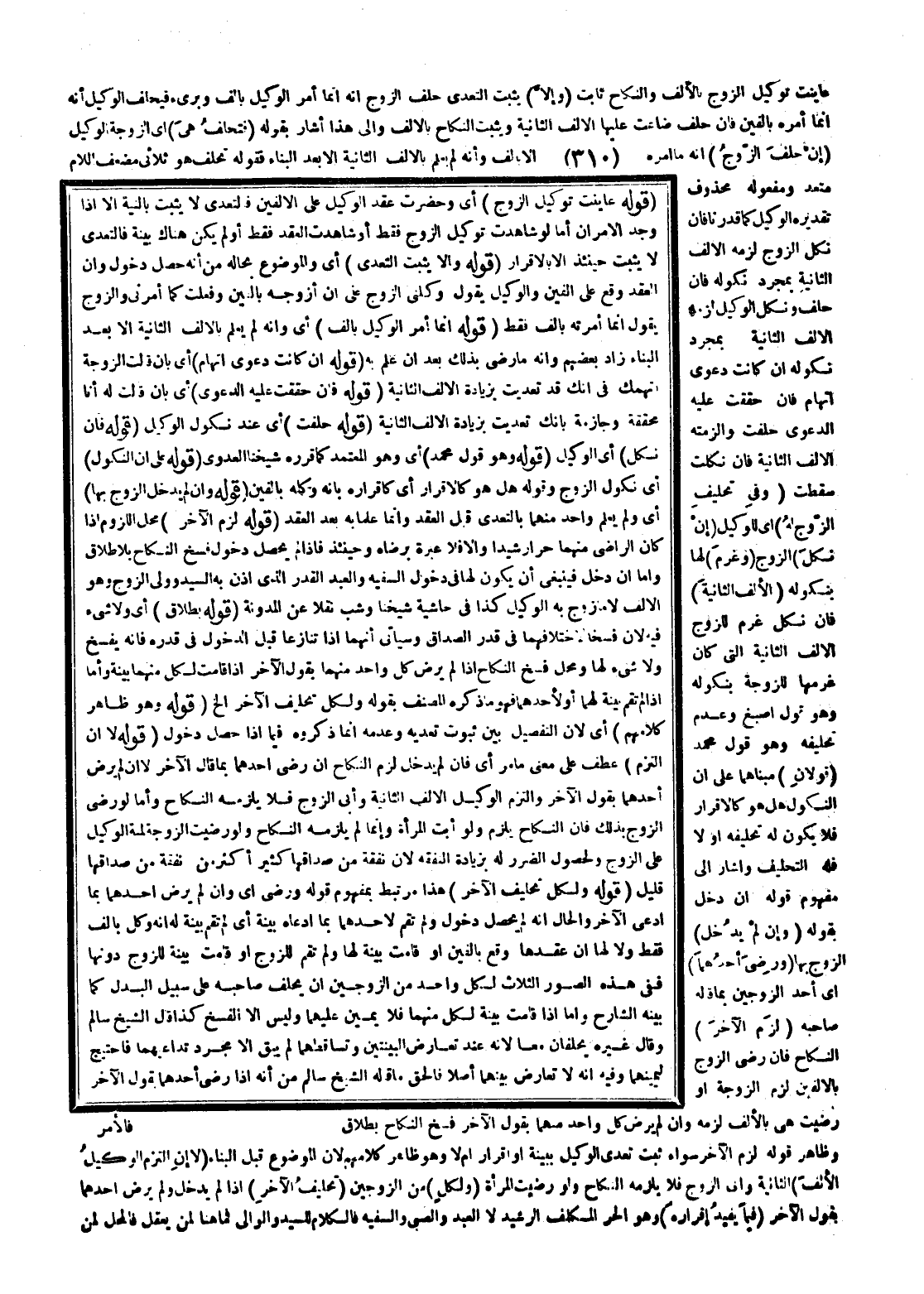 عَايَنَتْ تَوْكِيلَ الزَّوْجِ بِالْأَلْفِ وَالنِّكَاحُ ثَابِتٌ (وَإِلَّا) يَثْبُتْ التَّعَدِّي حَلَفَ الزَّوْجُ أَنَّهُ إنَّمَا أَمَرَ الْوَكِيلَ بِأَلْفٍ وَبَرِئَ فَيَحْلِفُ الْوَكِيلُ أَنَّهُ إنَّمَا أَمَرَهُ بِأَلْفَيْنِ فَإِنْ حَلَفَ ضَاعَتْ الْأَلْفُ الثَّانِيَةُ وَيَثْبُتُ النِّكَاحُ بِالْأَلْفِ وَإِلَى هَذَا أَشَارَ بِقَوْلِهِ (فَتُحَلِّفُ هِيَ) أَيْ الزَّوْجَةُ الْوَكِيلَ (إنْ حَلَفَ الزَّوْجُ) إنَّهُ مَا أَمَرَهُ إلَّا بِأَلْفٍ وَإِنَّهُ لَمْ يَعْلَمْ بِالْأَلْفِ الثَّانِيَةِ إلَّا بَعْدَ الْبِنَاءِ فَقَوْلُهُ: تُحَلِّفُ هُوَ ثُلَاثِيٌّ مُضَعَّفُ اللَّامِ مُتَعَدٍّ وَمَفْعُولُهُ مَحْذُوفٌ تَقْدِيرُهُ الْوَكِيلَ كَمَا قَدَّرْنَا فَإِنْ نَكَلَ الزَّوْجُ لَزِمَهُ الْأَلْفُ الثَّانِيَةُ بِمُجَرَّدِ نُكُولِهِ فَإِنْ حَلَفَ وَنَكَلَ الْوَكِيلُ لَزِمَهُ الْأَلْفُ الثَّانِيَةُ بِمُجَرَّدِ نُكُولِهِ إنْ كَانَتْ دَعْوَى اتِّهَامٍ فَإِنْ حُقِّقَتْ عَلَيْهِ الدَّعْوَى حَلَّفَتْ وَأَلْزَمَتْهُ الْأَلْفَ الثَّانِيَةَ فَإِنْ نَكَلَتْ سَقَطَتْ (وَفِي تَحْلِيفِ الزَّوْجِ لَهُ) أَيْ لِلْوَكِيلِ (إنْ نَكَلَ) الزَّوْجُ (وَغَرِمَ) لَهَا بِنُكُولِهِ (الْأَلْفَ الثَّانِيَةَ) فَإِنْ نَكَلَ غَرِمَ لِلزَّوْجِ الْأَلْفَ الثَّانِيَةَ الَّتِي كَانَ غَرِمَهَا لِلزَّوْجَةِ بِنُكُولِهِ وَهُوَ قَوْلُ أَصْبَغَ وَعَدَمُ تَحْلِيفِهِ وَهُوَ قَوْلُ مُحَمَّدٍ.