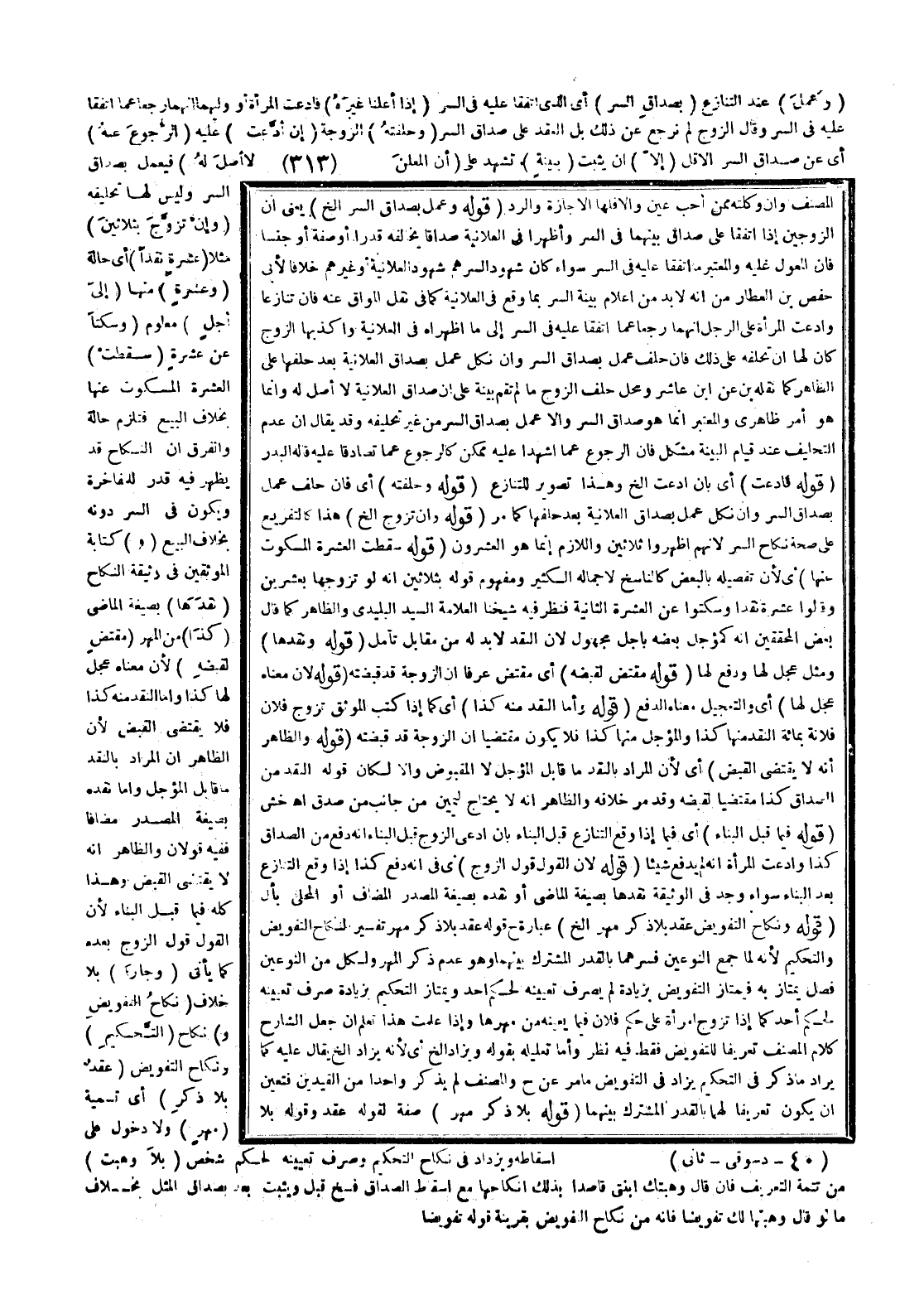 (قَوْلُهُ: لِأَنَّ الْقَوْلَ قَوْلُ الزَّوْجِ) أَيْ فِي أَنَّهُ دَفَعَ كَذَا إذَا وَقَعَ التَّنَازُعُ بَعْدَ الْبِنَاءِ سَوَاءٌ وُجِدَ فِي الْوَثِيقَةِ نَقْدُهَا بِصِيغَةِ الْمَاضِي أَوْ نَقْدُهُ بِصِيغَةِ الْمَصْدَرِ الْمُضَافِ أَوْ الْمُحَلَّى بِأَلْ