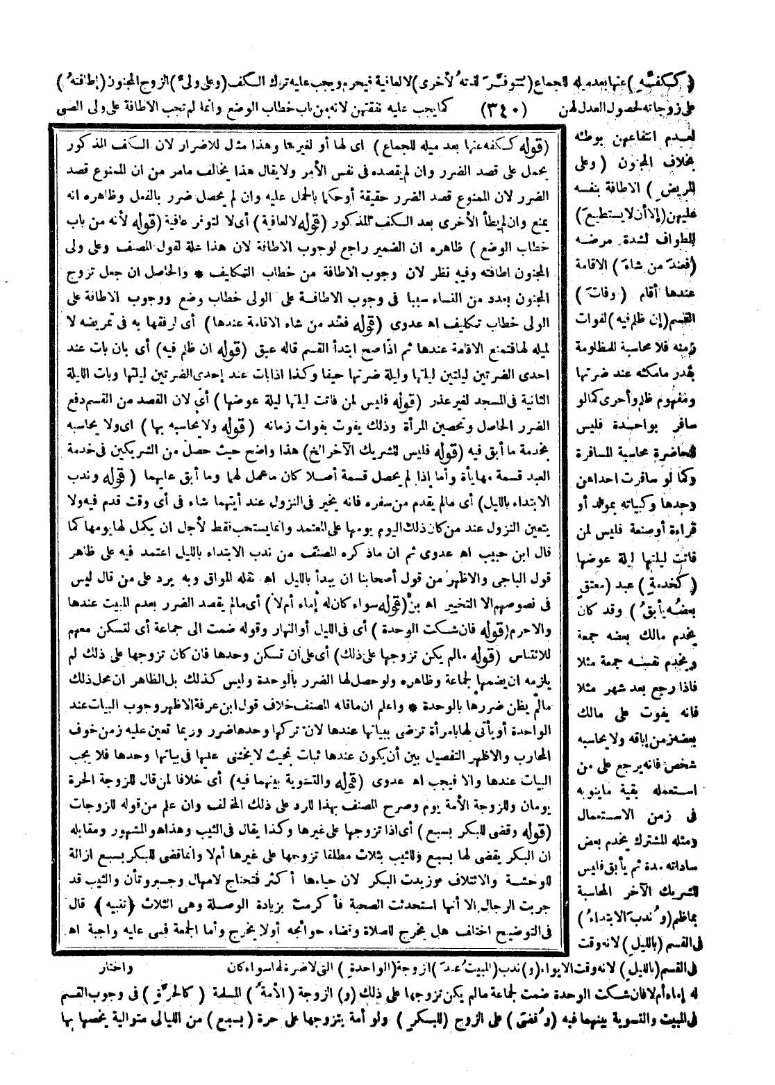 (قَوْلُهُ وَالتَّسْوِيَةُ بَيْنَهُمَا فِيهِ) أَيْ خِلَافًا لِمَنْ قَالَ لِلزَّوْجَةِ الْحُرَّةِ يَوْمَانِ وَلِلزَّوْجَةِ الْأَمَةِ يَوْمٌ وَصَرَّحَ الْمُصَنِّفُ بِهَذَا الرَّدِّ عَلَى ذَلِكَ الْمُخَالِفِ وَإِنْ عُلِمَ مِنْ قَوْلِهِ لِلزَّوْجَاتِ