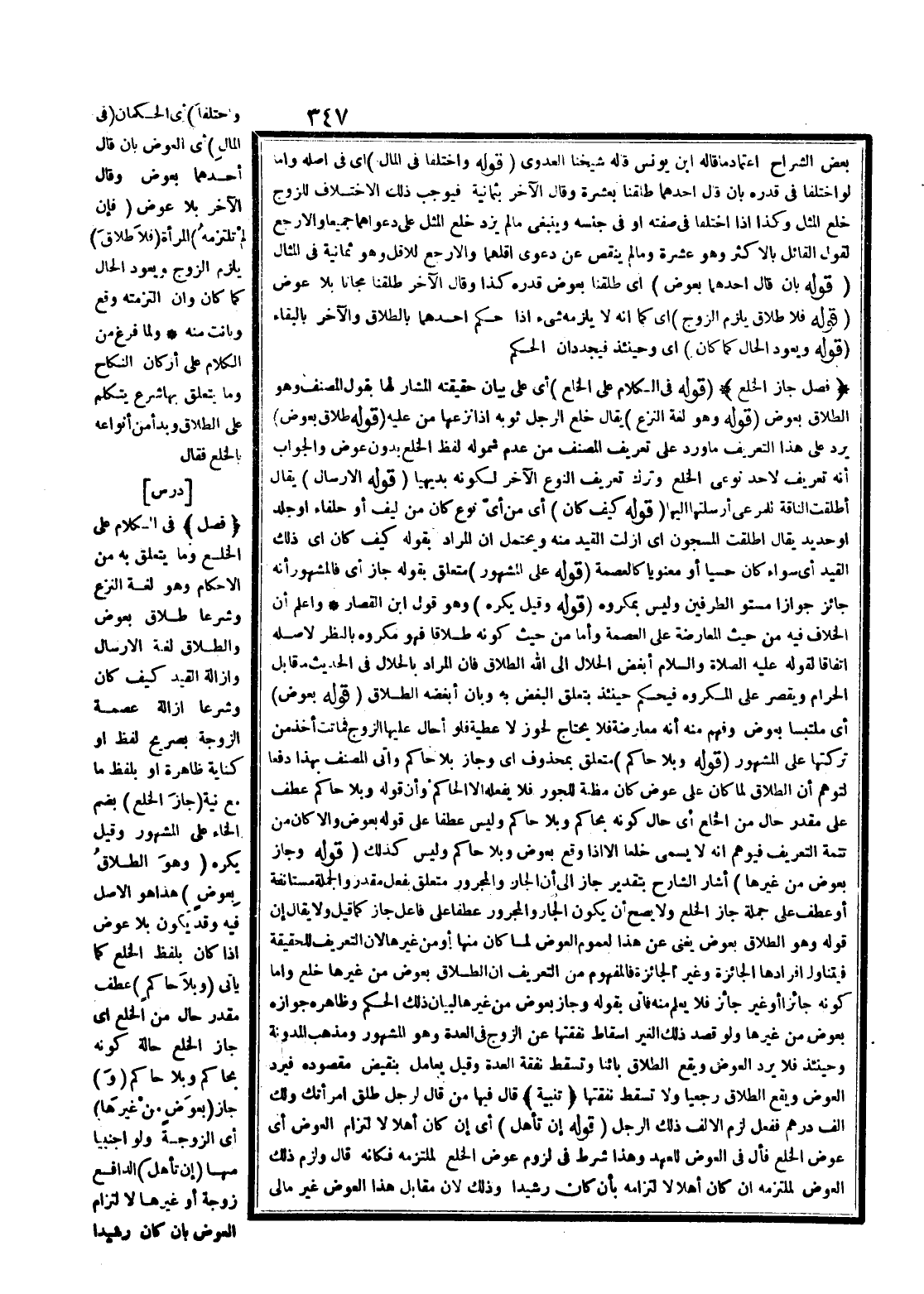 وَلَمَّا فَرَغَ مِنْ الْكَلَامِ عَلَى أَرْكَانِ النِّكَاحِ وَمَا يَتَعَلَّقُ بِهَا شَرَعَ يَتَكَلَّمُ عَلَى الطَّلَاقِ وَبَدَأَ مِنْ أَنْوَاعِهِ بِالْخُلْعِ فَقَالَ.