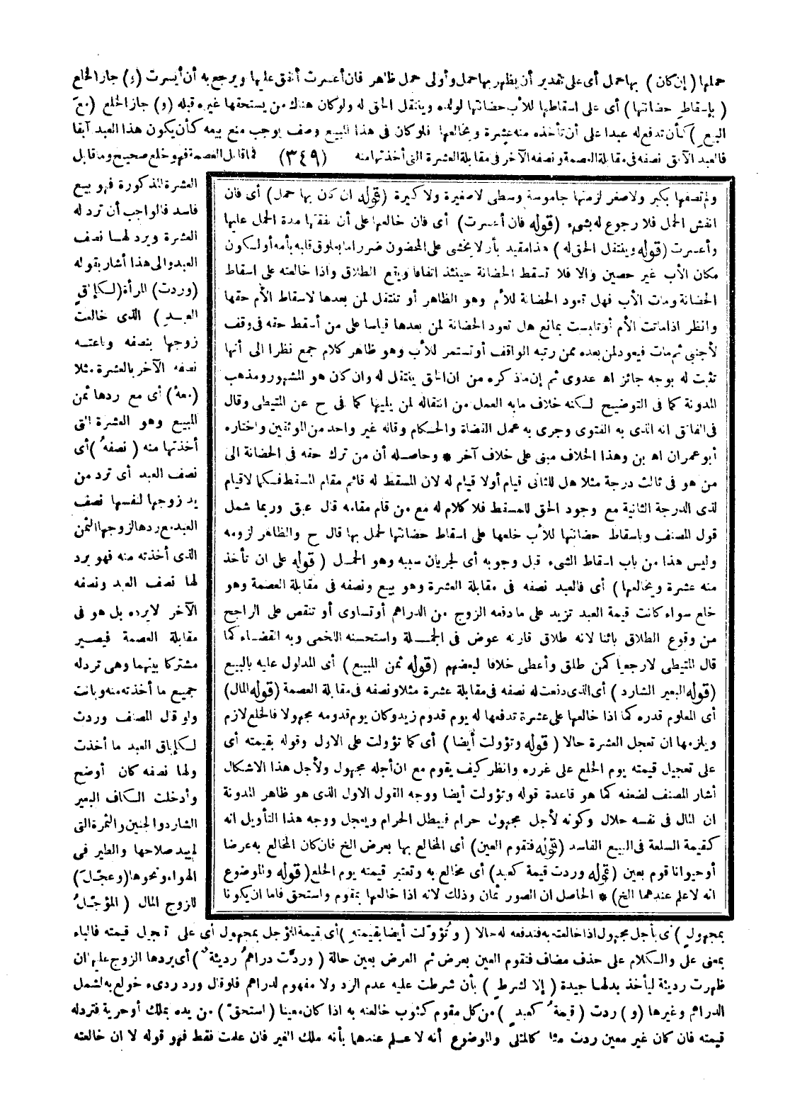 (و) جَازَ الْخُلْعُ (مَعَ الْبَيْعِ) كَأَنْ تَدْفَعَ لَهُ عَبْدًا عَلَى أَنْ تَأْخُذَهُ مِنْهُ عَشَرَةً وَيُخَالِعَهَا فَلَوْ كَانَ فِي هَذَا الْمَبِيعِ وَصْفٌ يُوجِبُ مَنْعَ بَيْعِهِ كَأَنْ يَكُونَ هَذَا الْعَبْدُ آبِقًا فَالْعَبْدُ الْآبِقُ نِصْفُهُ فِي مُقَابَلَةِ الْعِصْمَةِ وَنِصْفُهُ الْآخَرُ فِي مُقَابَلَةِ الْعَشَرَةِ الَّتِي أَخَذَتْهَا مِنْهُ فَمَا قَابَلَ الْعِصْمَةَ فَهُوَ خُلْعٌ صَحِيحٌ وَمَا قَابَلَ الْعَشَرَةَ الْمَذْكُورَةَ فَهُوَ بَيْعٌ فَاسِدٌ فَالْوَاجِبُ أَنْ تَرُدَّ لَهُ الْعَشَرَةَ وَيَرُدَّ لَهَا نِصْفَ الْعَبْدِ وَإِلَى هَذَا أَشَارَ بِقَوْلِهِ (وَرَدَّتْ) الْمَرْأَةُ (لِكَإِبَاقِ الْعَبْدِ) الَّذِي خَالَعَتْ زَوْجَهَا بِنِصْفِهِ وَبَاعَتْهُ نِصْفَهُ الْآخَرَ بِالْعَشَرَةِ مَثَلًا (مَعَهُ) أَيْ مَعَ رَدِّهَا ثَمَنَ الْمَبِيعِ وَهُوَ الْعَشَرَةُ الَّتِي أَخَذَتْهَا مِنْهُ (نِصْفَهُ) أَيْ نِصْفَ الْعَبْدِ أَيْ تَرُدُّ مِنْ يَدِ زَوْجِهَا لِنَفْسِهَا نِصْفَ الْعَبْدِ مَعَ رَدِّهَا لِزَوْجِهَا الثَّمَنَ الَّذِي أَخَذَتْهُ مِنْهُ فَهُوَ يَرُدُّ لَهَا نِصْفَ الْعَبْدِ، وَنِصْفُهُ الْآخَرَ لَا يَرُدُّهُ بَلْ هُوَ فِي مُقَابَلَةِ الْعِصْمَةِ فَيَصِيرُ مُشْتَرَكًا بَيْنَهُمَا وَهِيَ تَرُدُّ لَهُ جَمِيعَ مَا أَخَذَتْهُ مِنْهُ وَبَانَتْ وَلَوْ قَالَ الْمُصَنِّفُ وَرَدَّتْ لِكَإِبَاقِ الْعَبْدِ مَا أَخَذَتْ وَلَهَا نِصْفُهُ كَانَ أَوْضَحَ وَأَدْخَلَتْ الْكَافُ الْبَعِيرَ الشَّارِدَ وَالْجَنِينَ وَالثَّمَرَةَ الَّتِي لَمْ يَبْدُ صَلَاحُهَا وَالطَّيْرَ فِي الْهَوَاءِ وَنَحْوَهَا (وَعُجِّلَ) لِلزَّوْجِ الْمَالُ (الْمُؤَجَّلُ بِمَجْهُولٍ) أَيْ بِأَجَلٍ مَجْهُولٍ إذَا خَالَعَتْهُ بِهِ فَتَدْفَعُهُ لَهُ حَالًّا (وَتُؤُوِّلَتْ أَيْضًا بِقِيمَتِهِ) أَيْ بِقِيمَةِ الْمُؤَجَّلِ بِمَجْهُولٍ أَيْ عَلَى تَعْجِيلِ قِيمَتِهِ فَالْبَاءُ بِمَعْنَى عَلَى وَالْكَلَامُ عَلَى حَذْفِ مُضَافٍ فَتُقَوَّمُ الْعَيْنُ بِعَرْضٍ ثُمَّ الْعَرْضُ بِعَيْنٍ حَالَّةٍ (وَرُدَّتْ دَرَاهِمُ رَدِيئَةٌ) أَيْ يَرُدُّهَا الزَّوْجُ عَلَيْهَا إنْ ظَهَرَتْ رَدِيئَةً لِيَأْخُذَ بَدَلَهَا جَيِّدَةً (إلَّا لِشَرْطٍ) بِأَنْ شَرَطَتْ عَلَيْهِ عَدَمَ الرَّدِّ وَلَا مَفْهُومَ لِدَرَاهِمَ فَلَوْ قَالَ وَرُدَّ رَدِيءٌ خُولِعَ بِهِ لَشَمِلَ الدَّرَاهِمَ وَغَيْرَهَا (و) رُدَّتْ (قِيمَةُ كَعَبْدٍ) مِنْ كُلِّ مُقَوَّمٍ كَثَوْبٍ خَالَعَتْهُ بِهِ إذَا كَانَ مُعَيَّنًا (اُسْتُحِقَّ) مِنْ يَدِهِ بِمِلْكٍ أَوْ حُرِّيَّةٍ فَتَرُدُّ لَهُ قِيمَتَهُ فَإِنْ كَانَ غَيْرَ مُعَيَّنٍ رَدَّتْ مِثْلَهُ كَالْمِثْلِيِّ، وَالْمَوْضُوعُ أَنَّهُ لَا عِلْمَ عِنْدَهُمَا بِأَنَّهُ مِلْكُ الْغَيْرِ فَإِنْ عَلِمَتْ فَقَطْ فَهُوَ قَوْلُهُ لَا إنْ خَالَعَتْهُ