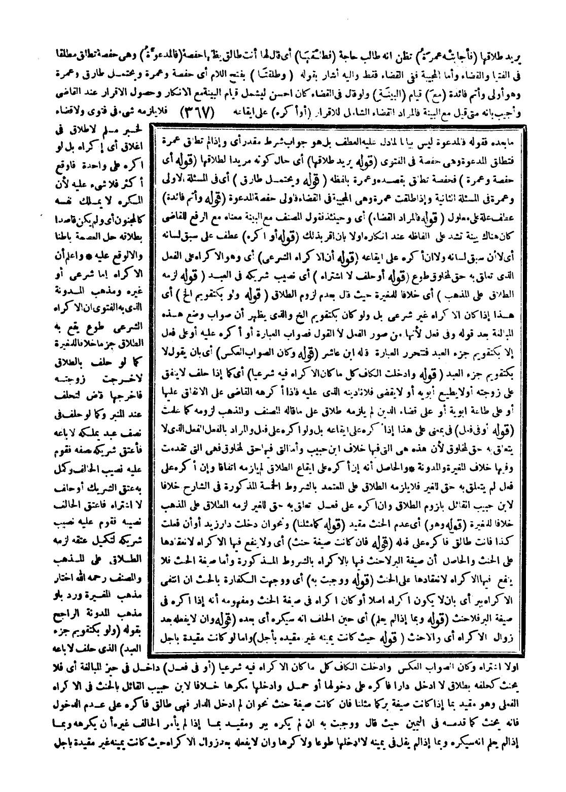 ـــــــــــــــــــــــــــــQمَا بَعْدَهُ فَقَوْلُهُ فَالْمَدْعُوَّةُ لَيْسَ بَيَانًا لِمَا دَلَّ عَلَيْهِ الْعَطْفُ بَلْ هُوَ جَوَابُ شَرْطٍ مُقَدَّرٍ أَيْ وَإِذَا لَمْ تَطْلُقْ عَمْرَةُ فَتَطْلُقُ الْمَدْعُوَّةُ وَهِيَ حَفْصَةُ فِي الْفَتْوَى (قَوْلُهُ يُرِيدُ طَلَاقَهَا) أَيْ حَالَ كَوْنِهِ مُرِيدًا لِطَلَاقِهَا (قَوْلُهُ أَيْ حَفْصَةُ وَعَمْرَةُ) فَحَفْصَةُ تَطْلُقُ بِقَصْدِهِ وَعَمْرَةُ بِلَفْظِهِ (قَوْلُهُ وَيُحْتَمَلُ طَارِقُ) أَيْ فِي الْمَسْأَلَةِ الْأُولَى وَعَمْرَةُ فِي الْمَسْأَلَةِ الثَّانِيَةِ وَإِذَا طَلُقَتْ عَمْرَةُ وَهِيَ الْمُجِيبَةُ فِي الْقَضَاءِ فَأَوْلَى حَفْصَةُ الْمَدْعُوَّةُ (قَوْلُهُ وَأَتَمُّ فَائِدَةً) عَطْفُ عِلَّةٍ عَلَى مَعْلُولٍ (قَوْلُهُ فَالْمُرَادُ الْقَضَاءُ) أَيْ وَحِينَئِذٍ فَقَوْلُ الْمُصَنِّفِ مَعَ الْبَيِّنَةِ مَعْنَاهُ مَعَ الرَّفْعِ لِلْقَاضِي كَانَ هُنَاكَ بَيِّنَةٌ تَشُدُّ عَلَى أَلْفَاظِهِ عِنْدَ إنْكَارِهِ أَوْ لَا بِأَنْ أَقَرَّ بِذَلِكَ