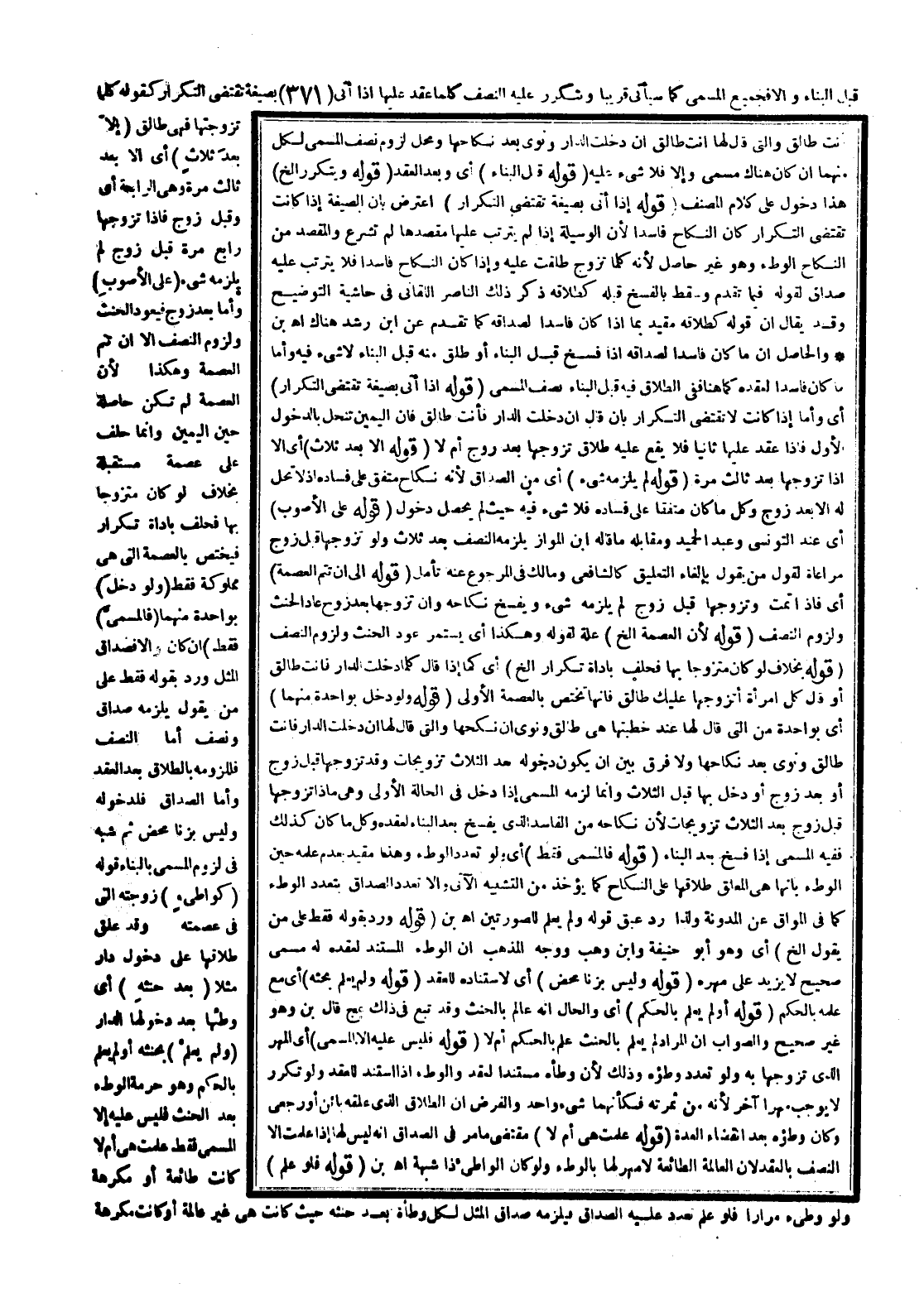 قَبْلَ الْبِنَاءِ وَإِلَّا فَجَمِيعُ الْمُسَمَّى كَمَا سَيَأْتِي قَرِيبًا وَيَتَكَرَّرُ عَلَيْهِ النِّصْفُ كُلَّمَا عَقَدَ عَلَيْهَا إذَا أَتَى بِصِيغَةٍ تَقْتَضِي التَّكْرَارَ كَقَوْلِهِ كُلَّمَا تَزَوَّجْتهَا فَهِيَ طَالِقٌ (إلَّا بَعْدَ ثَلَاثٍ) أَيْ إلَّا بَعْدَ ثَالِثِ مَرَّةٍ وَهِيَ الرَّابِعَةُ أَيْ وَقَبْلَ زَوْجٍ فَإِذَا تَزَوَّجَهَا رَابِعَ مَرَّةٍ قَبْلَ زَوْجٍ لَمْ يَلْزَمْهُ شَيْءٌ (عَلَى الْأَصْوَبِ) وَأَمَّا بَعْدَ زَوْجٍ فَيَعُودُ الْحِنْثُ وَلُزُومُ النِّصْفِ إلَّا أَنْ تَتِمَّ الْعِصْمَةُ وَهَكَذَا؛ لِأَنَّ الْعِصْمَةَ لَمْ تَكُنْ حَاصِلَةً حِينَ الْيَمِينِ وَإِنَّمَا حَلَفَ عَلَى عِصْمَةٍ مُسْتَقْبَلَةٍ بِخِلَافِ لَوْ كَانَ مُتَزَوِّجًا بِهَا فَحَلَفَ بِأَدَاةِ تَكْرَارٍ فَيَخْتَصُّ بِالْعِصْمَةِ الَّتِي هِيَ مَمْلُوكَةٌ فَقَطْ