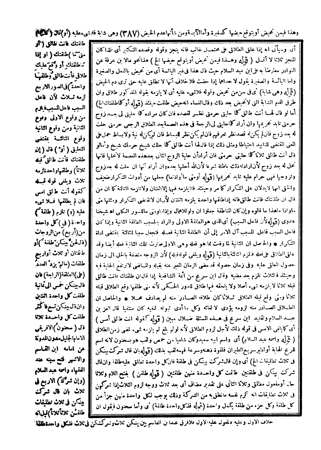 فَإِنْ قَالَ: بَيْنَكُنَّ خَمْسٌ إلَى ثَمَانِيَةٍ طَلُقَتْ كُلُّ وَاحِدَةٍ اثْنَتَيْنِ وَإِنْ قَالَ بَيْنَكُنَّ تِسْعٌ فَأَكْثَرُ طَلُقَتْ كُلُّ وَاحِدَةٍ ثَلَاثًا قَالَ (سَحْنُونٌ) الْإِفْرِيقِيُّ الْإِمَامُ الْجَلِيلُ مُدَوِّنُ الْمُدَوَّنَةِ عَنْ إمَامِهِ ابْنِ الْقَاسِمِ وَالْأَشْهَرُ فَتْحُ سِينِهِ عِنْدَ الْفُقَهَاءِ وَاسْمُهُ عَبْدُ السَّلَامِ (وَإِنْ) (شَرِكَ) الْأَرْبَعَ فِي ثَلَاثٍ بِأَنْ قَالَ شَرِكْت بَيْنَكُنَّ فِي ثَلَاثِ تَطْلِيقَاتٍ (طَلَقْنَ ثَلَاثًا ثَلَاثًا) قِيلَ إنَّهُ خِلَافُ الْأَوَّلِ وَعَلَيْهِ فَالْمُعَوَّلُ عَلَيْهِ الْأَوَّلُ فَلَا فَرْقَ عِنْدَ ابْنِ الْقَاسِمِ بَيْنَ بَيْنَكُنَّ ثَلَاثٌ وَشَرِكْتُكُنَّ فِي ثَلَاثٍ فَلِكُلِّ وَاحِدَةٍ طَلْقَةٌ