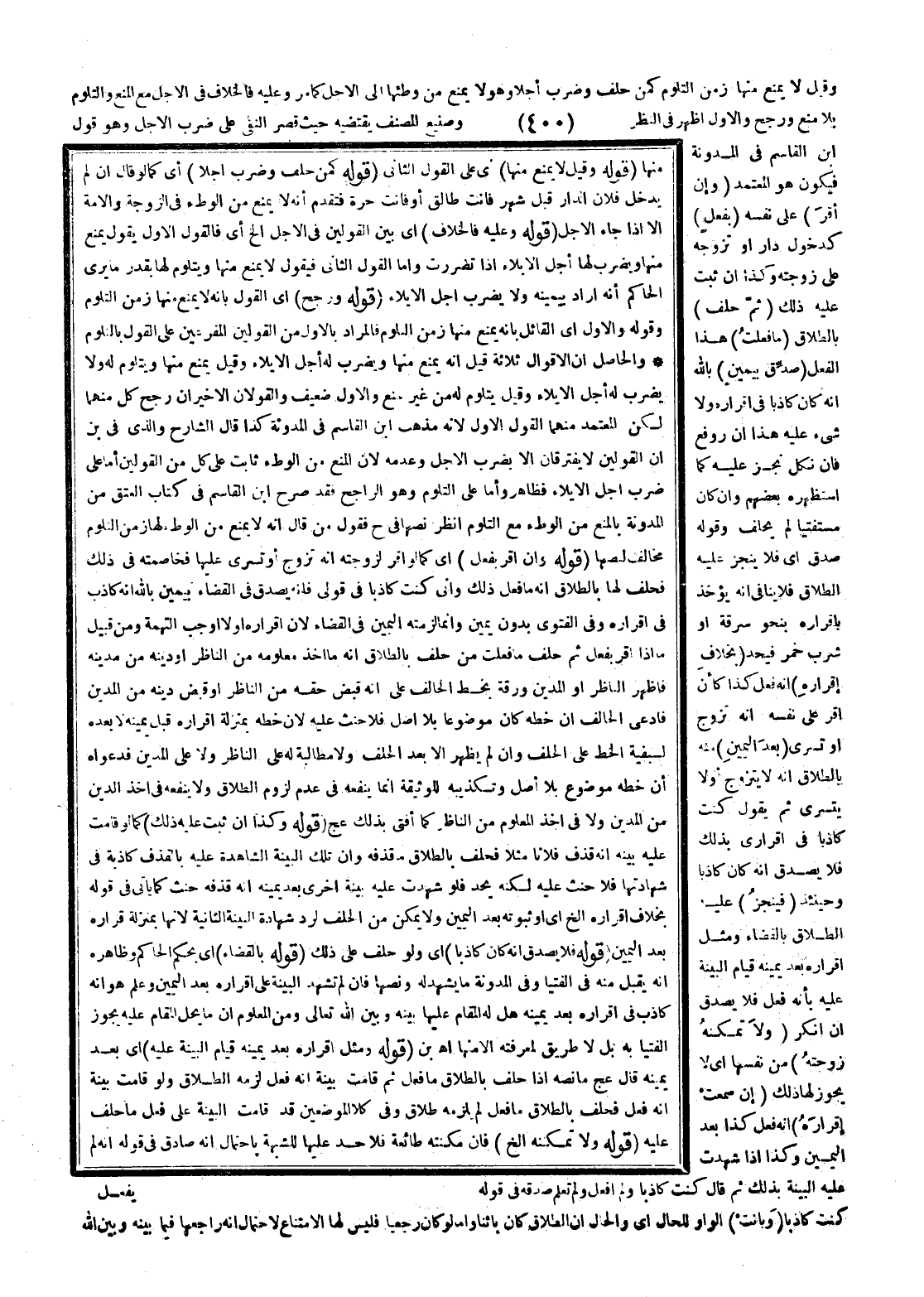 وَالْحَاصِلُ أَنَّ الْأَقْوَالَ ثَلَاثَةٌ قِيلَ إنَّهُ يُمْنَعُ مِنْهَا وَيُضْرَبُ لَهُ أَجَلُ الْإِيلَاءِ وَقِيلَ يُمْنَعُ مِنْهَا وَيُتَلَوَّمُ لَهُ وَلَا يُضْرَبُ لَهُ أَجَلُ الْإِيلَاءِ وَقِيلَ يُتَلَوَّمُ لَهُ مِنْ غَيْرِ مَنْعٍ وَالْأَوَّلُ ضَعِيفٌ وَالْقَوْلَانِ الْأَخِيرَانِ رُجِّحَ كُلٌّ مِنْهُمَا لَكِنَّ الْمُعْتَمَدَ مِنْهُمَا الْقَوْلُ الْأَوَّلُ؛ لِأَنَّهُ مَذْهَبُ ابْنِ الْقَاسِمِ فِي الْمُدَوَّنَةِ كَذَا قَالَ الشَّارِحُ وَاَلَّذِي فِي بْن أَنَّ الْقَوْلَيْنِ لَا يَفْتَرِقَانِ إلَّا بِضَرْبِ الْأَجَلِ وَعَدَمِهِ؛ لِأَنَّ الْمَنْعَ مِنْ الْوَطْءِ ثَابِتٌ عَلَى كُلٍّ مِنْ الْقَوْلَيْنِ أَمَّا عَلَى ضَرْبِ أَجَلِ الْإِيلَاءِ فَظَاهِرٌ وَأَمَّا عَلَى التَّلَوُّمِ وَهُوَ الرَّاجِحُ فَقَدْ صَرَّحَ ابْنُ الْقَاسِمِ فِي كِتَابِ الْعِتْقِ مِنْ الْمُدَوَّنَةِ بِالْمَنْعِ مِنْ الْوَطْءِ مَعَ التَّلَوُّمِ اُنْظُرْ نَصَّهَا فِي ح فَقَوْلُ مَنْ قَالَ: إنَّهُ لَا يُمْنَعُ مِنْ الْوَطْءِ لَهَا زَمَنَ التَّلَوُّمِ مُخَالِفٌ لِنَصِّهَا
