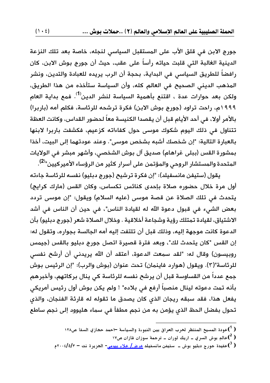 (¬3) عقيدة جورج دبليو بوش ـ ستيفن مانسفيلد عرض/ علاء بيومي- الجزيرة نت - 3/ 5/2004م