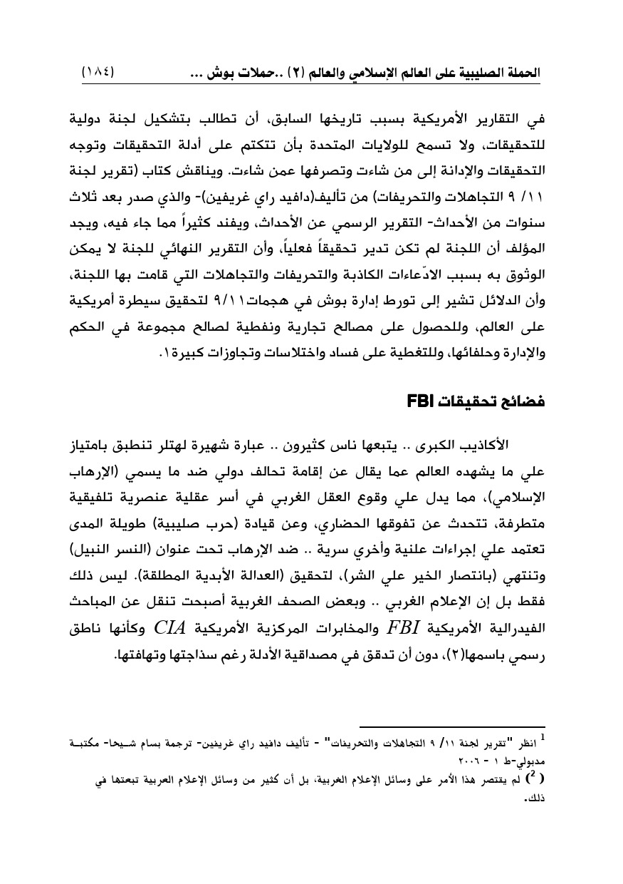 (¬1) انظر "تقرير لجنة 11/ 9 التجاهلات والتحريفات" - تأليف دافيد راي غريفين- ترجمة بسام شيحا- مكتبة مدبولي-ط 1 - 2006