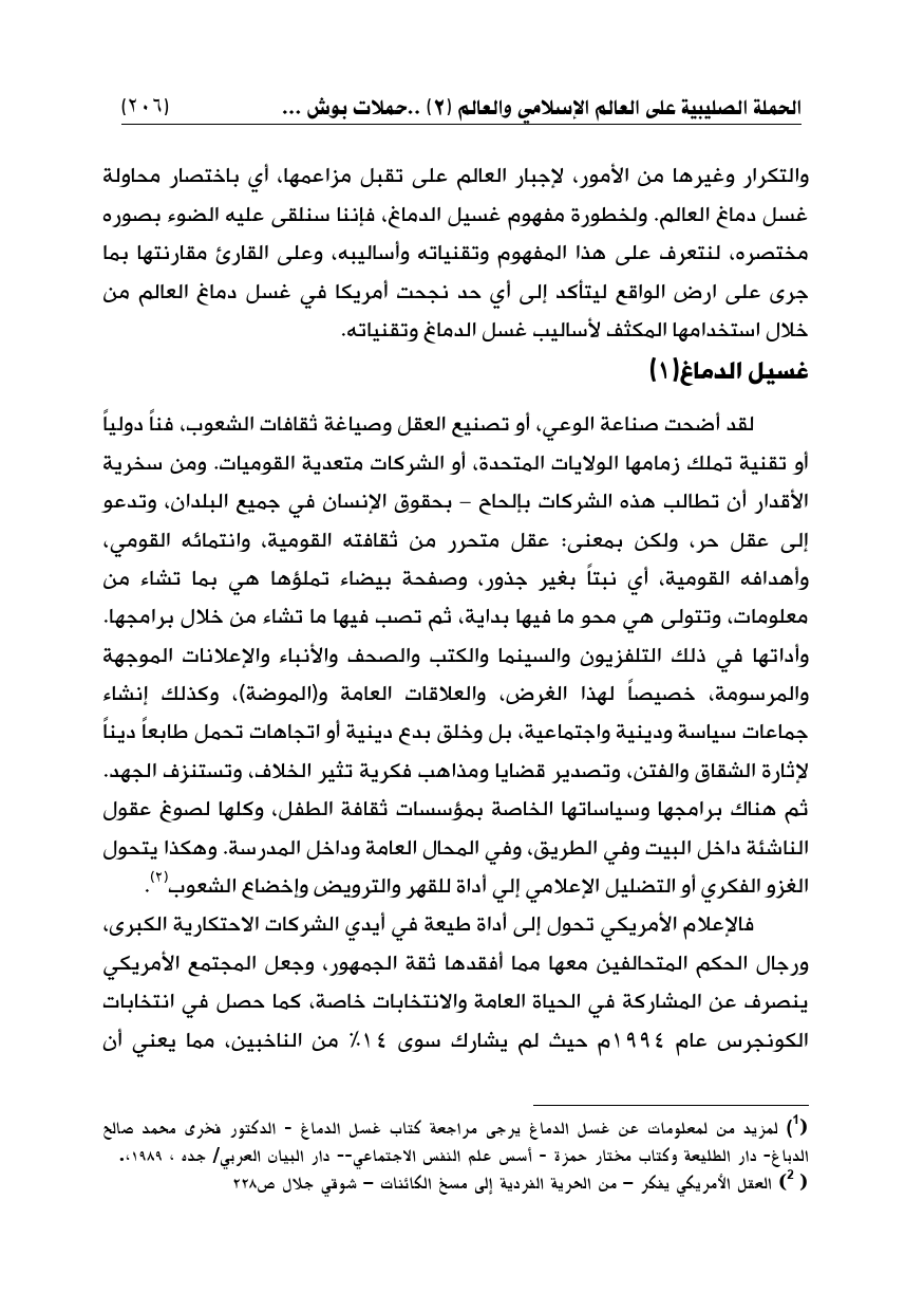 (¬1) لمزيد من لمعلومات عن غسل الدماغ يرجى مراجعة كتاب غسل الدماغ - الدكتور فخرى محمد صالح الدباغ- دار الطليعة وكتاب مختار حمزة - أسس علم النفس الاجتماعي-- دار البيان العربي/ جده، 1989،.