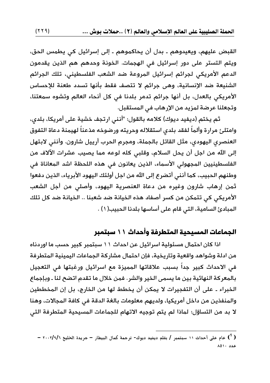 (¬1) عام على أحداث 11 سبتمبر / بقلم ديفيد ديوك- ترجمة كمال البيطار - جريدة الخليج 6/ 9/2002 - عدد 8510