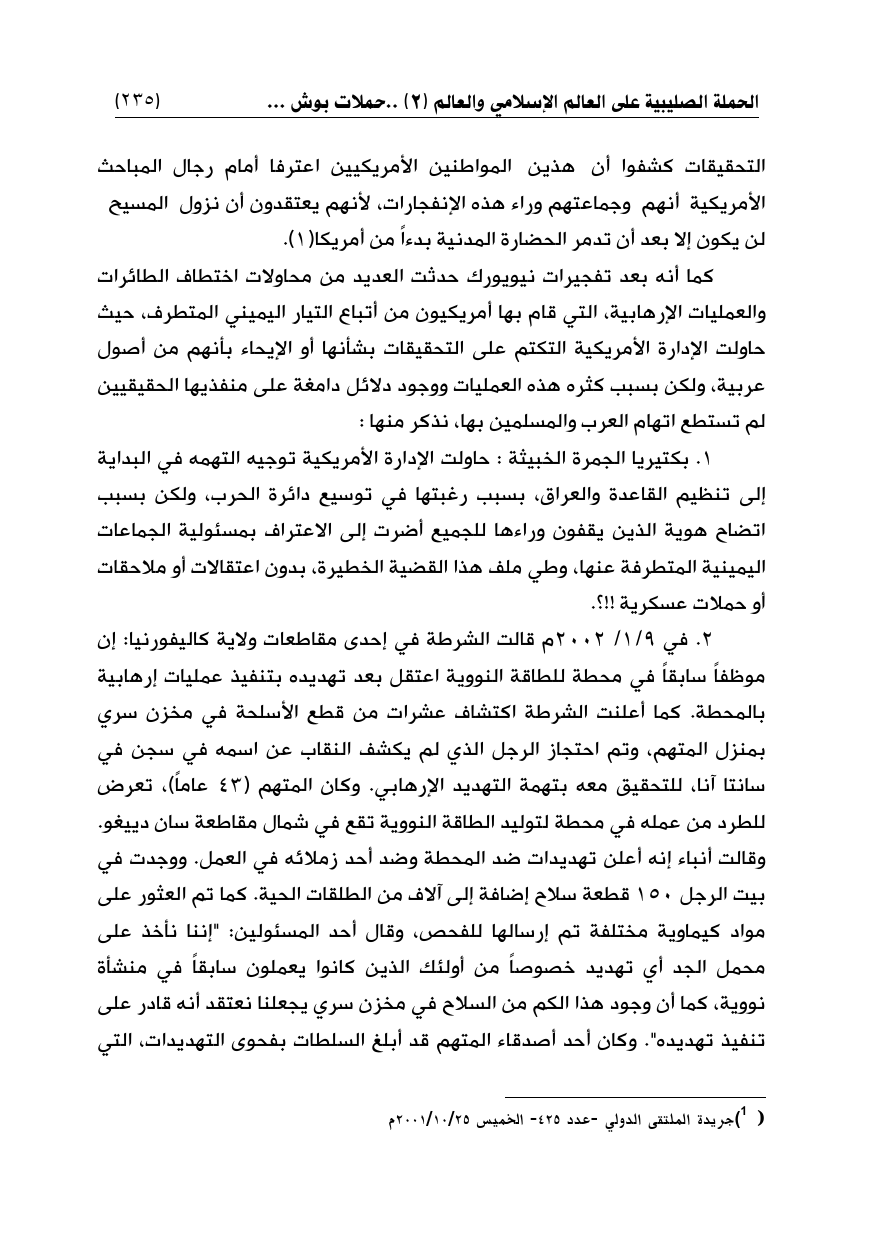 (¬1) جريدة الملتقى الدولي -عدد 425 - الخميس 25/ 10/2001م