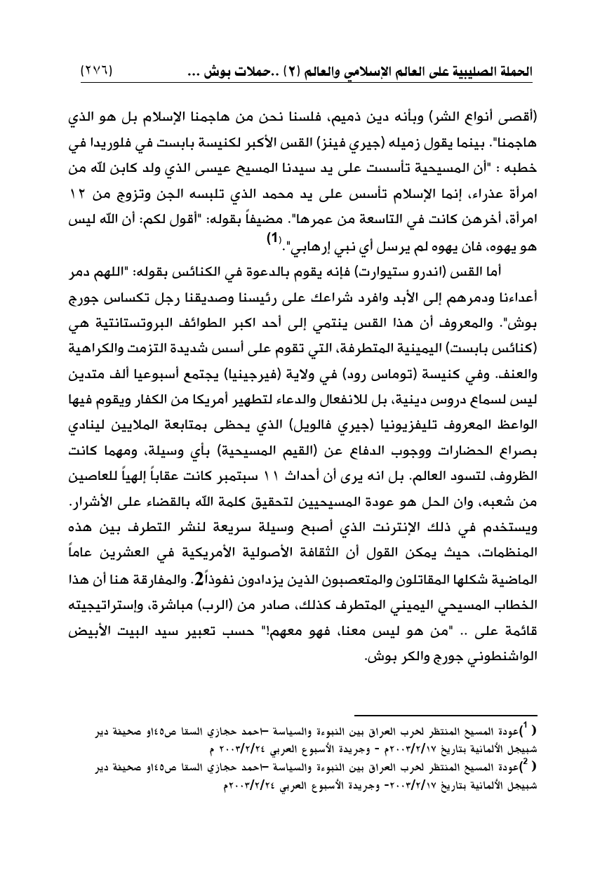 (¬2) عودة المسيح المنتظر لحرب العراق بين النبوءة والسياسة -احمد حجازي السقا ص45أو صحيفة دير شبيجل الألمانية بتاريخ 17/ 2/2003 - وجريدة الأسبوع العربي 24/ 2/2003م