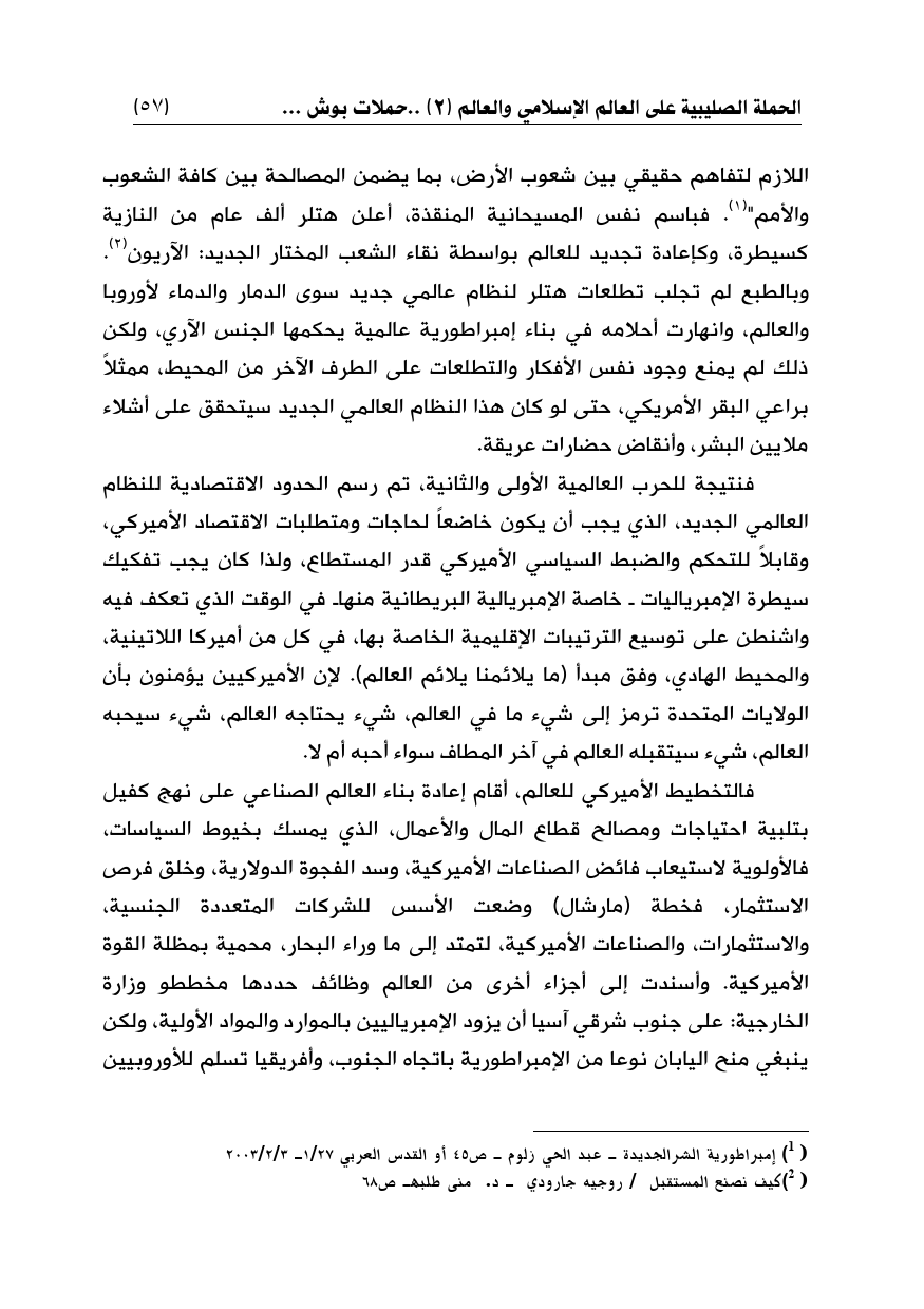 (¬1) إمبراطورية الشرالجديدة ـ عبد الحي زلوم ـ ص45 أو القدس العربي 27/ 1ـ 3/ 2/2003