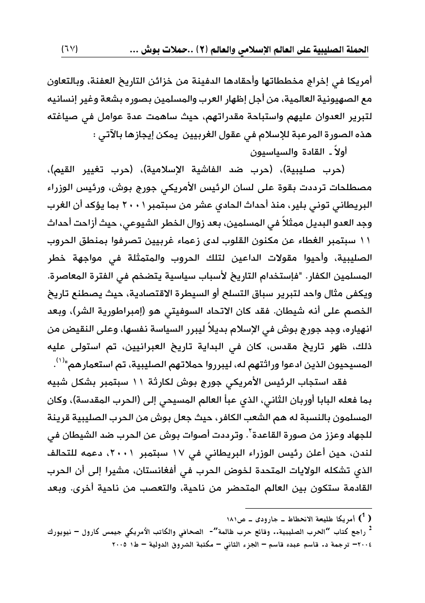(¬2) راجع كتاب "الحرب الصليبية .. وقائع حرب ظالمة"- الصحافي والكاتب الأمريكي جيمس كارول - نيويورك 2004 - ترجمة د. قاسم عبده قاسم - الجزء الثاني - مكتبة الشروق الدولية - ط1 2005
