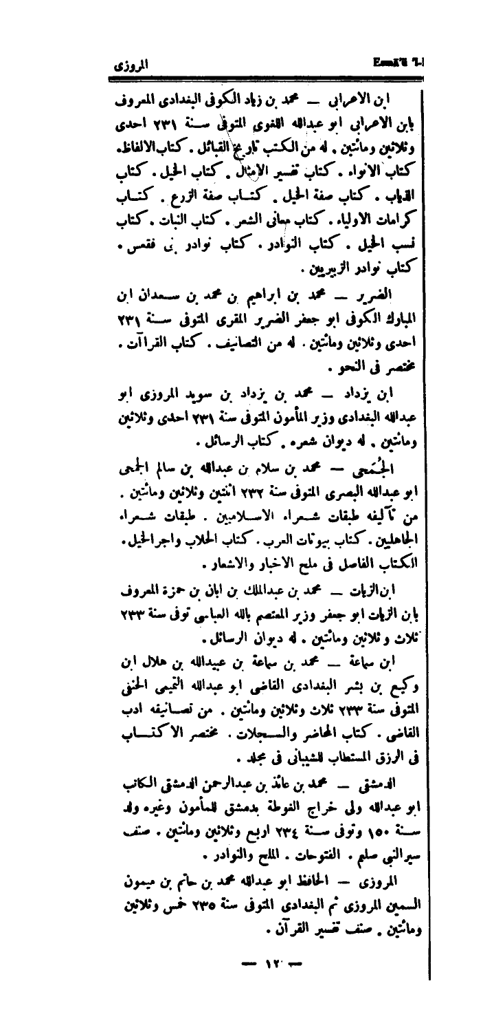 ابْن الاعرابي - مُحَمَّد بن زِيَاد الكوفى الْبَغْدَادِيّ الْمَعْرُوف بِابْن الاعرابي أَبُو عبد الله اللغوى الْمُتَوفَّى سنة 231 احدى وَثَلَاثِينَ وَمِائَتَيْنِ.