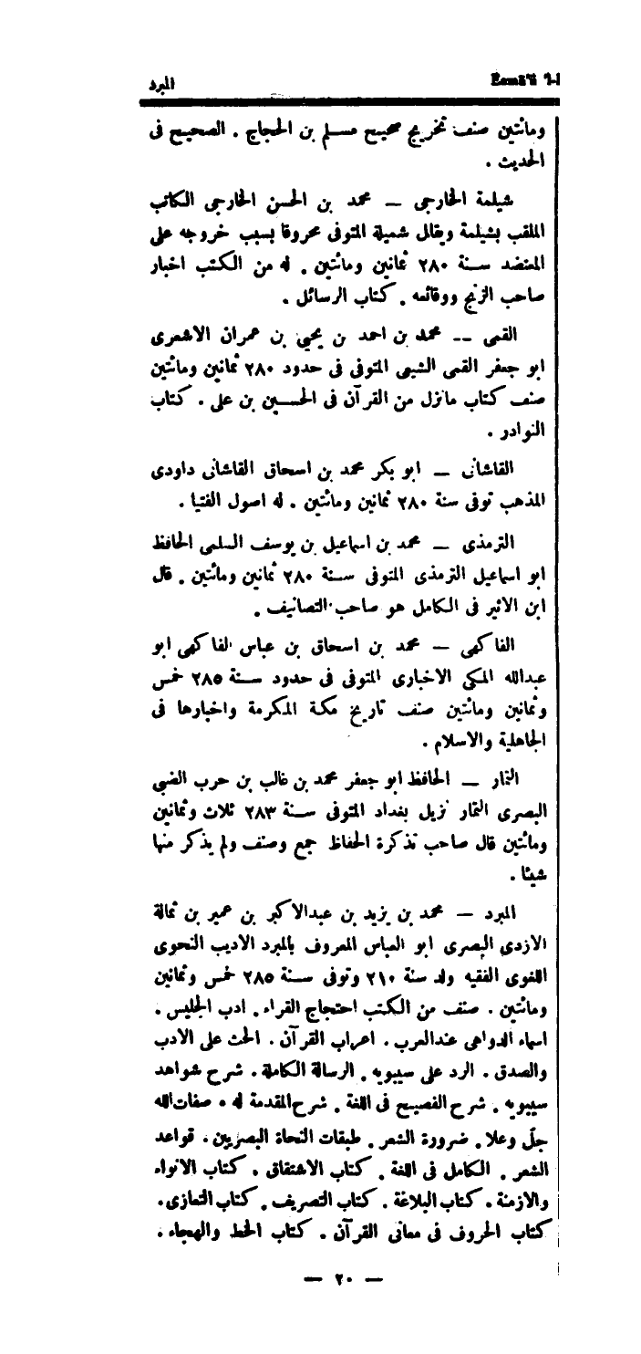الْمبرد - مُحَمَّد بن يزِيد بن عبد الاكبر بن عُمَيْر بن ثمالة الازدي الْبَصْرِيّ أَبُو الْعَبَّاس الْمَعْرُوف بالمبرد الاديب النَّحْوِيّ اللغوى الْفَقِيه ولد سنة 210 وَتوفى سنة 285 خمس وَثَمَانِينَ وَمِائَتَيْنِ.