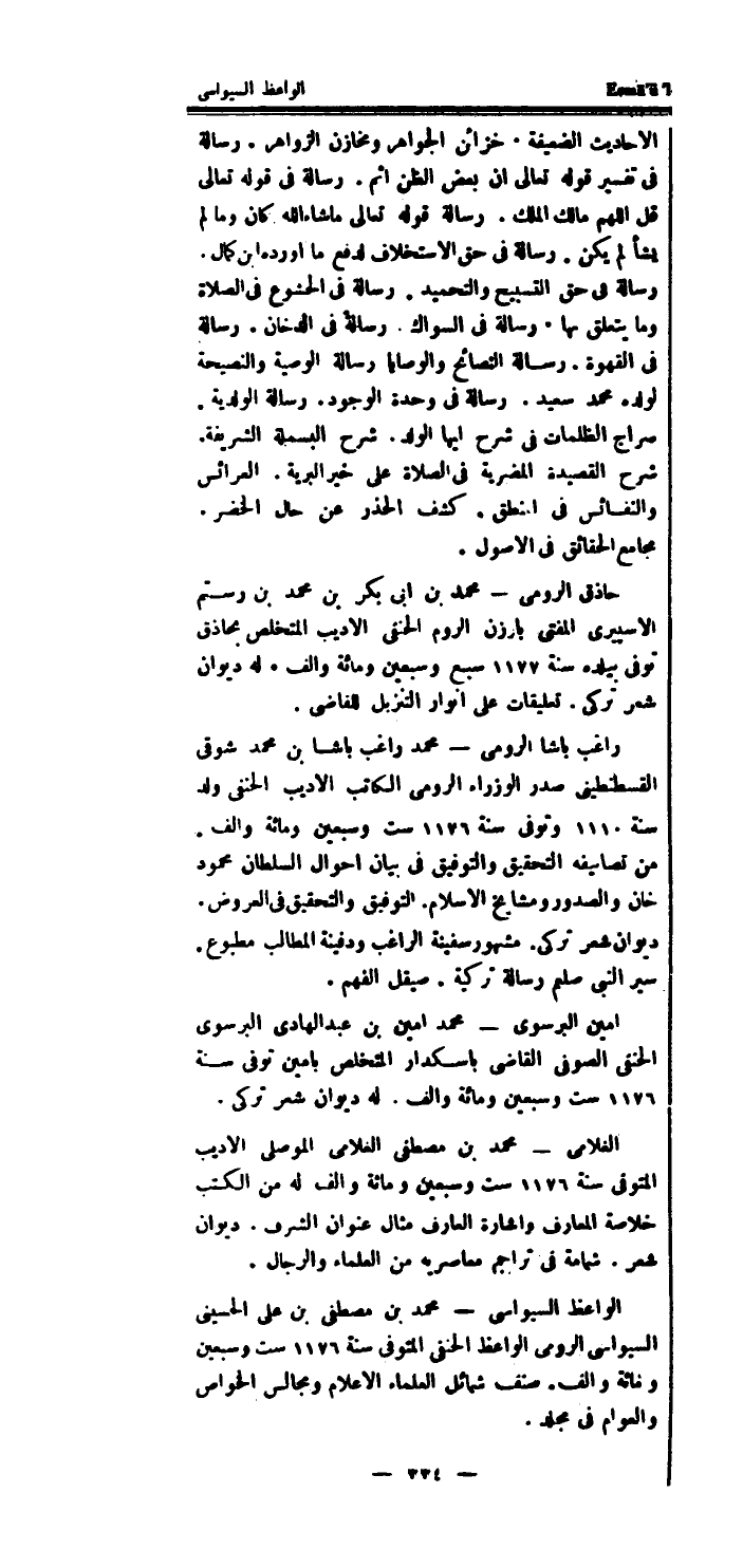الْوَاعِظ السيواسى مُحَمَّد بن مصطفى بن على الحسينى السيواسى الرُّومِي الْوَاعِظ الْحَنَفِيّ الْمُتَوفَّى سنة 1176 سِتّ وَسبعين وَمِائَة والف.