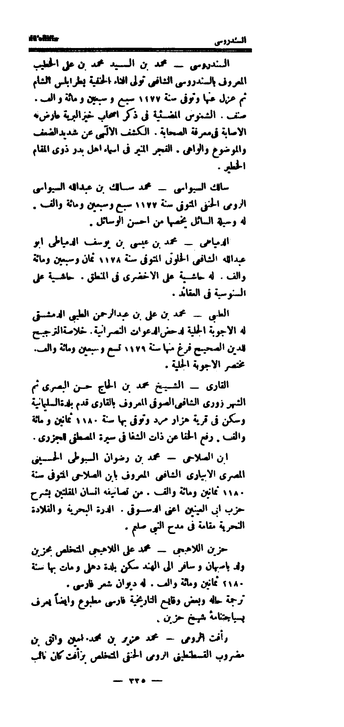 السندروسى مُحَمَّد بن السَّيِّد مُحَمَّد بن على الْخَطِيب الْمَعْرُوف بالسندروسى الشَّافِعِي تولى افناء الْحَنَفِيَّة بطرابلس الشَّام ثمَّ عزل عَنْهَا وَتوفى سنة 1177 سبع وَسبعين وَمِائَة والف.