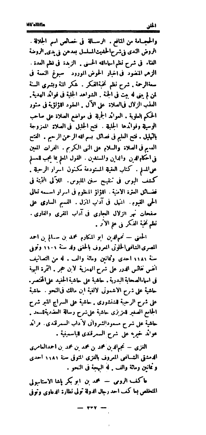 الغزى نجم الدَّين مُحَمَّد بن مُحَمَّد بن مُحَمَّد بن احْمَد العامري الدِّمَشْقِي الشَّافِعِي الْمَعْرُوف بالغزى الْمُتَوفَّى سنة 1181 احدى وَثَمَانِينَ وَمِائَة والف.