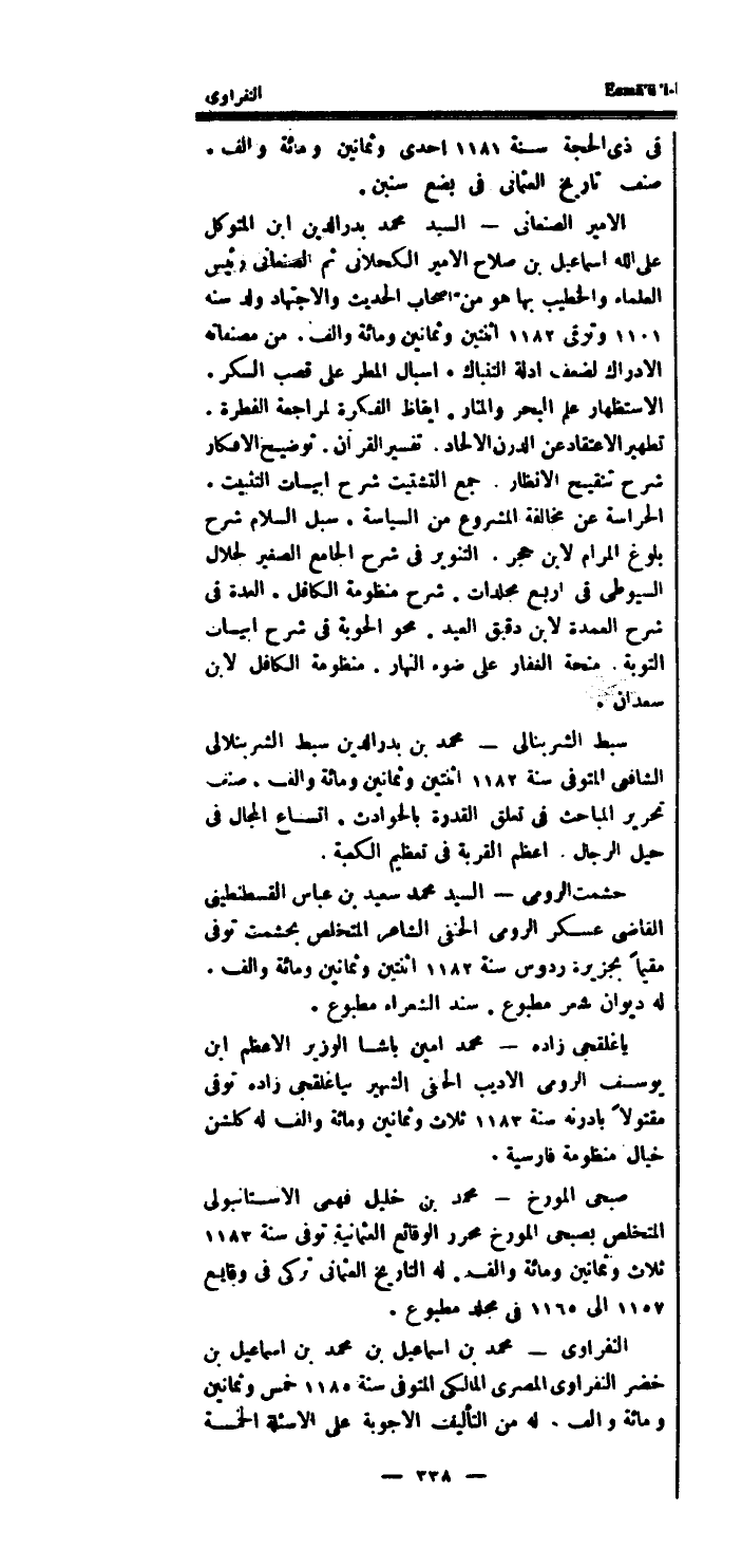 صبحى المورخ - مُحَمَّد بن خَلِيل فهمي الاستانبولى المتخلص بصبحي المورخ مُحَرر الوقائع العثمانية توفى سنة 1183 ثَلَاث وَثَمَانِينَ وَمِائَة والف.