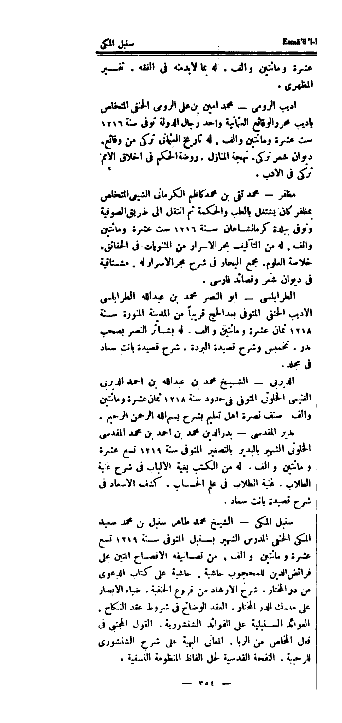 سنبل المكى الشَّيْخ مُحَمَّد طَاهِر سنبل بن مُحَمَّد سعيد المكى الْحَنَفِيّ الْمدرس الشهير بسنبل الْمُتَوفَّى سنة 1219 تسع عشرَة وَمِائَتَيْنِ والف.