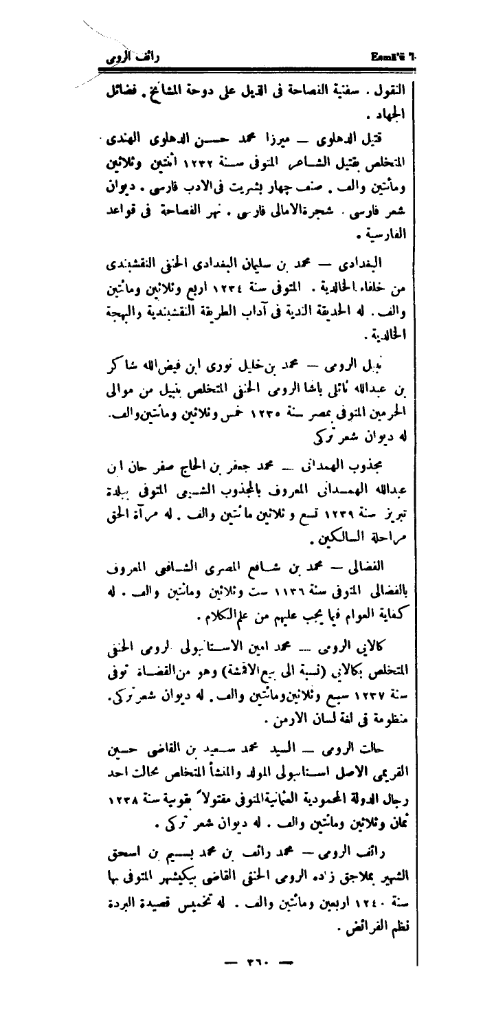 رائف الرُّومِي مُحَمَّد رائف بن مُحَمَّد بسيم بن اسحق الشهير بملاجق زَاده الرُّومِي الْحَنَفِيّ القاضى بيكيشهر الْمُتَوفَّى بهَا سنة 1240 اربعين وَمِائَتَيْنِ والف.