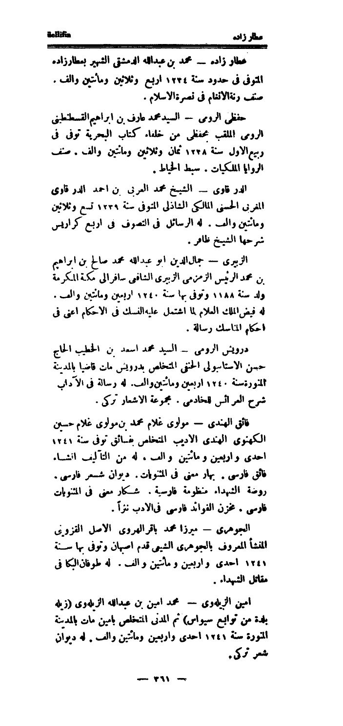 عطار زَاده مُحَمَّد بن عبد الله الدِّمَشْقِي الشهير بعطار زَاده الْمُتَوفَّى فِي حُدُود سنة 1234 ارْبَعْ وَثَلَاثِينَ وَمِائَتَيْنِ والف.