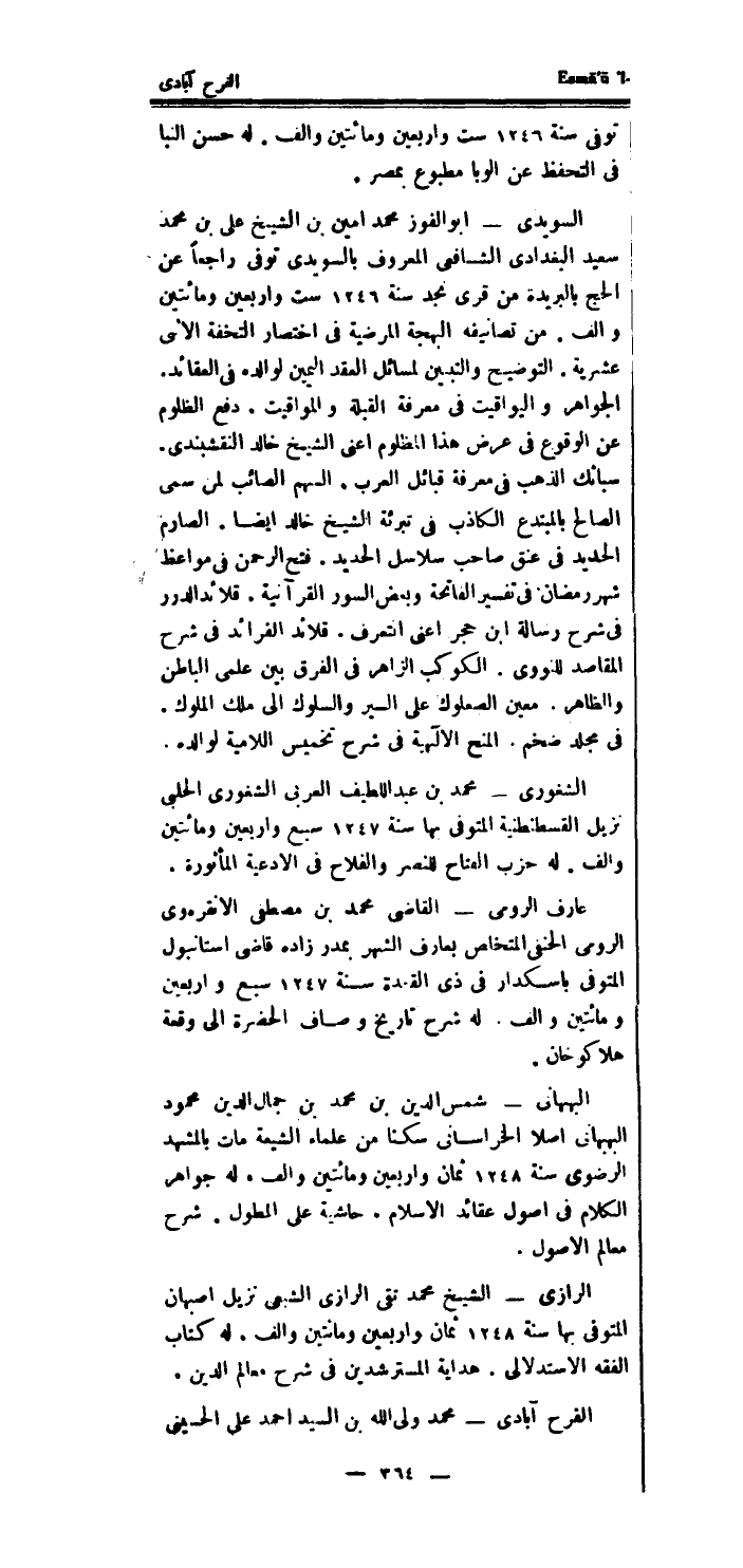 الْفَرح آبادى مُحَمَّد ولى الله بن السَّيِّد احْمَد على الحسينى