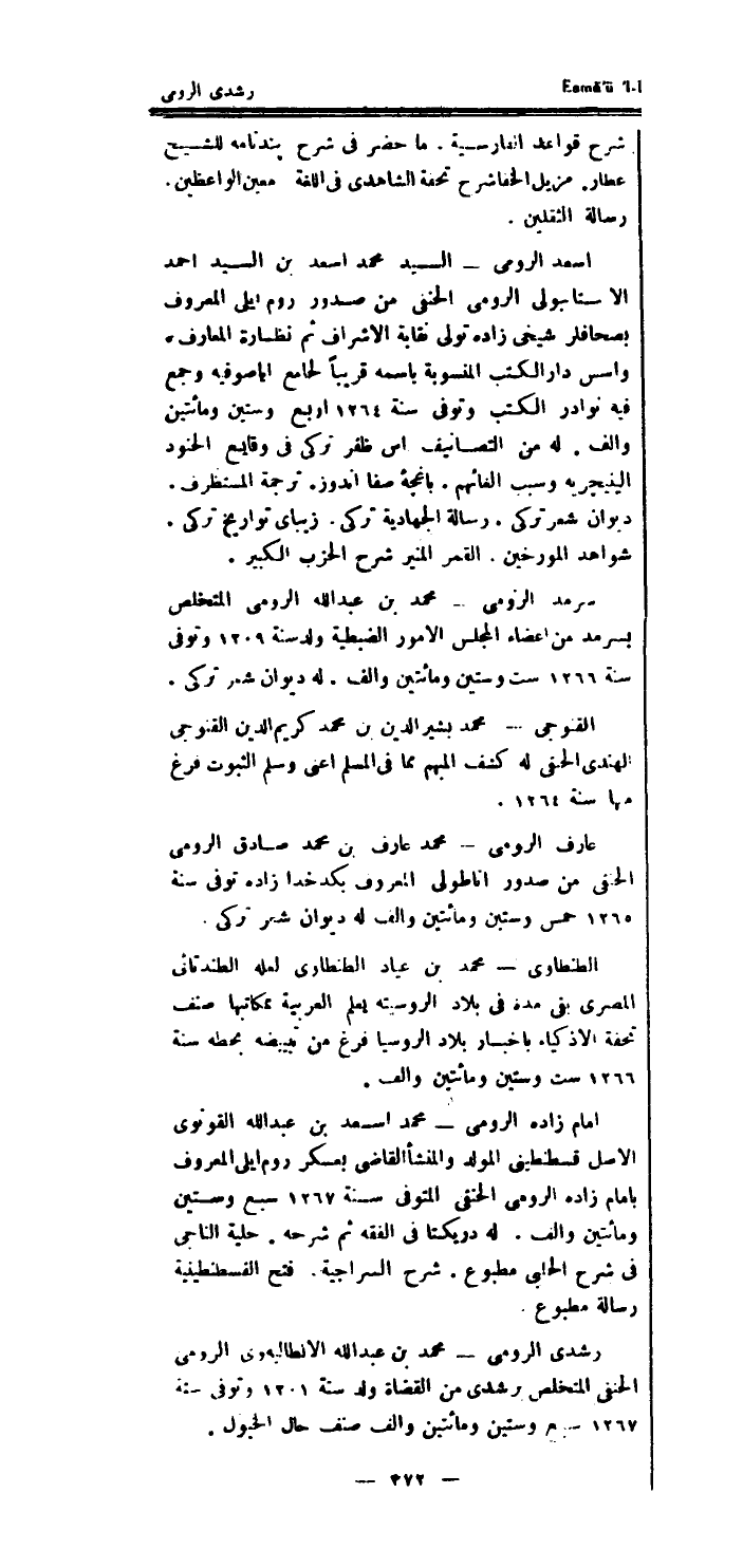 رشدي الرُّومِي مُحَمَّد بن عبد الله الانطاليه وى الرُّومِي الْحَنَفِيّ المتخلص برشدى من الْقُضَاة ولد سنة 1201 وَتوفى سنة 1267 سبع وَسِتِّينَ وَمِائَتَيْنِ والف صنف حَال الْخُيُول.