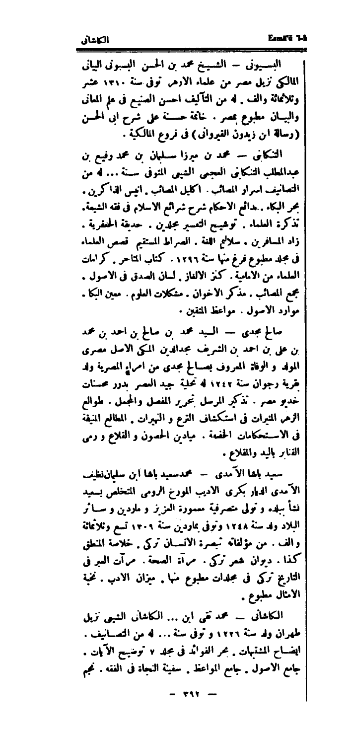 الكاشانى مُحَمَّد تقى ابْن..الكاشانى الشيعي نزيل طهران ولد سنة 1226 وَتوفى سنة..لَهُ من التصانيف.