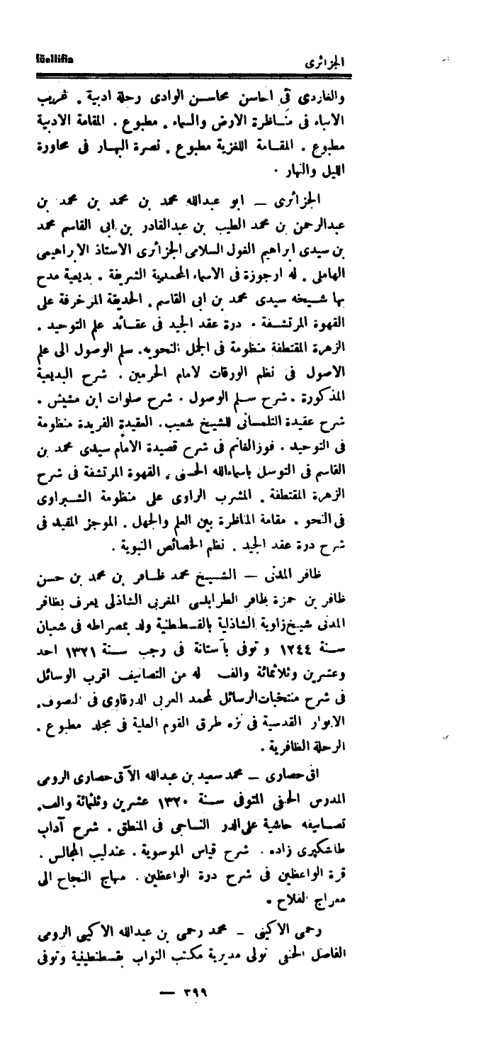 الجزائري أَبُو عبد الله مُحَمَّد بن مُحَمَّد بن مُحَمَّد بن عبد الرحمن بن مُحَمَّد الطّيب بن عبد الْقَادِر بن ابى الْقَاسِم مُحَمَّد بن سيدى ابراهيم الغول السلامى الجزائري الاستاذ الابراهيمي الهاملى.