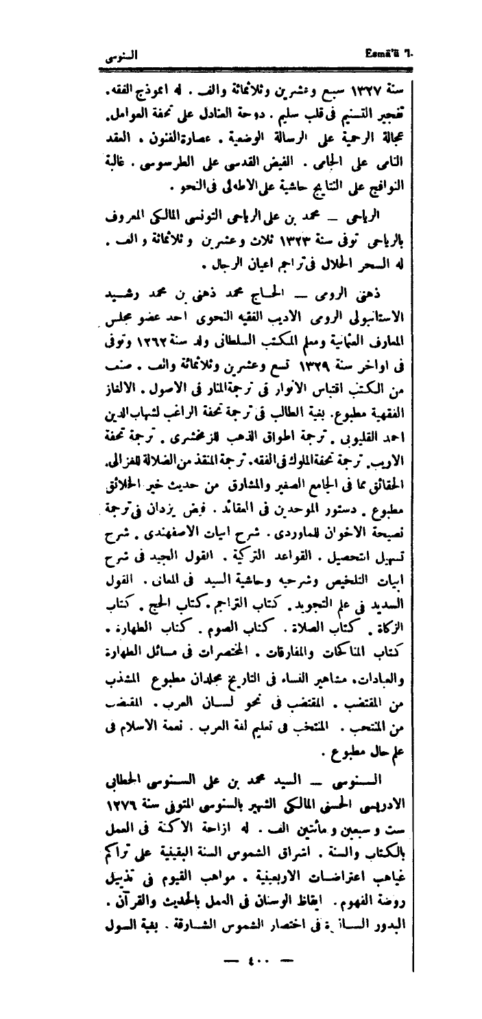 السنوسى السَّيِّد مُحَمَّد بن على السنوسى الخطابى الادريسي الْحسنى المالكى الشهير بالسنوسى الْمُتَوفَّى سنة 1276 سِتّ وَسبعين وَمِائَتَيْنِ الف.