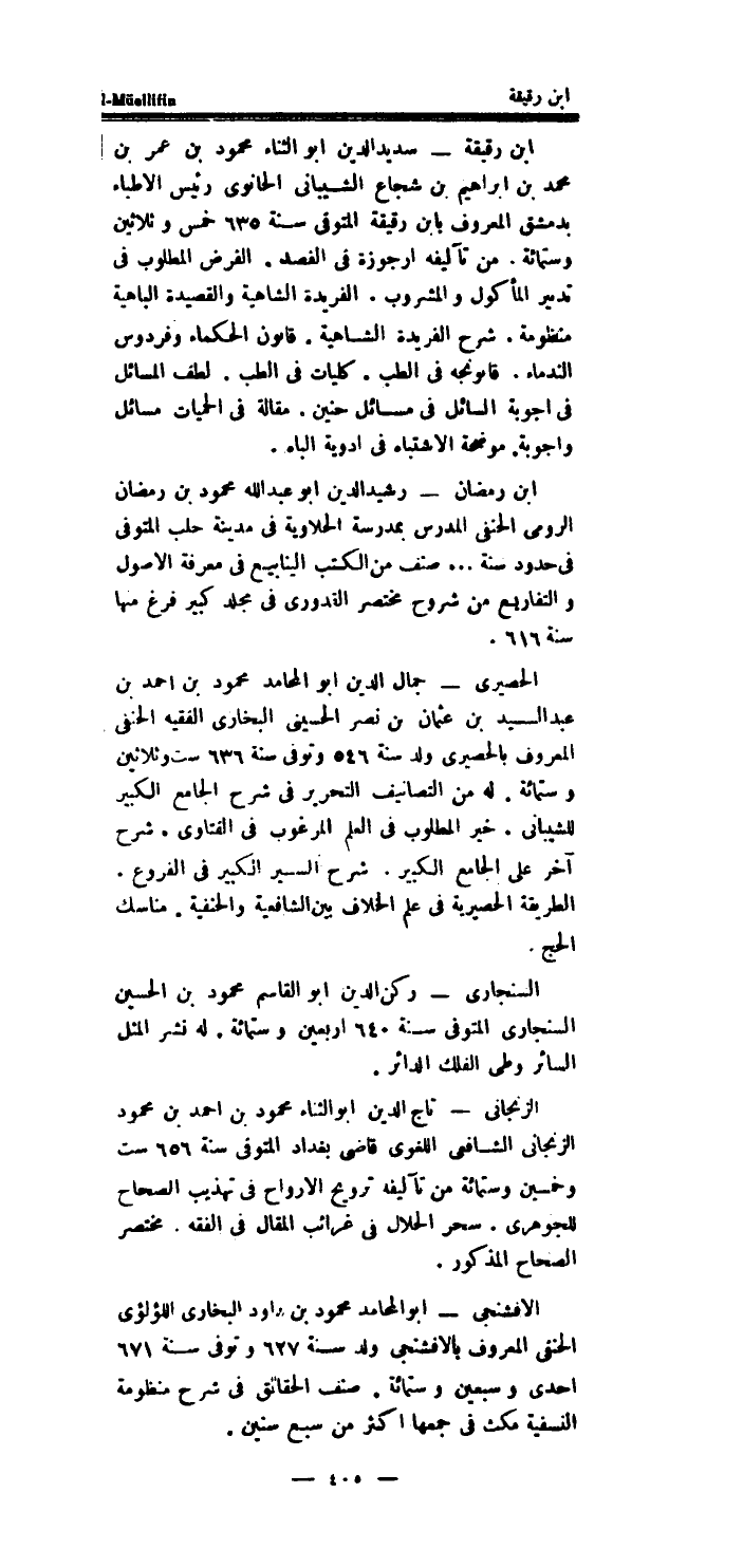 ابْن رَمَضَان رشيد الدَّين أَبُو عبد الله مَحْمُود بن رَمَضَان الرُّومِي الْحَنَفِيّ الْمدرس بمدرسة الحلاوية فِي مَدِينَة حلب الْمُتَوفَّى فِي حُدُود سنة..صنف من الْكتب الْيَنَابِيع فِي معرفَة الاصول والتفاريع من شُرُوح مُخْتَصر القدورى فِي مُجَلد كَبِير فرغ مِنْهَا سنة 616.