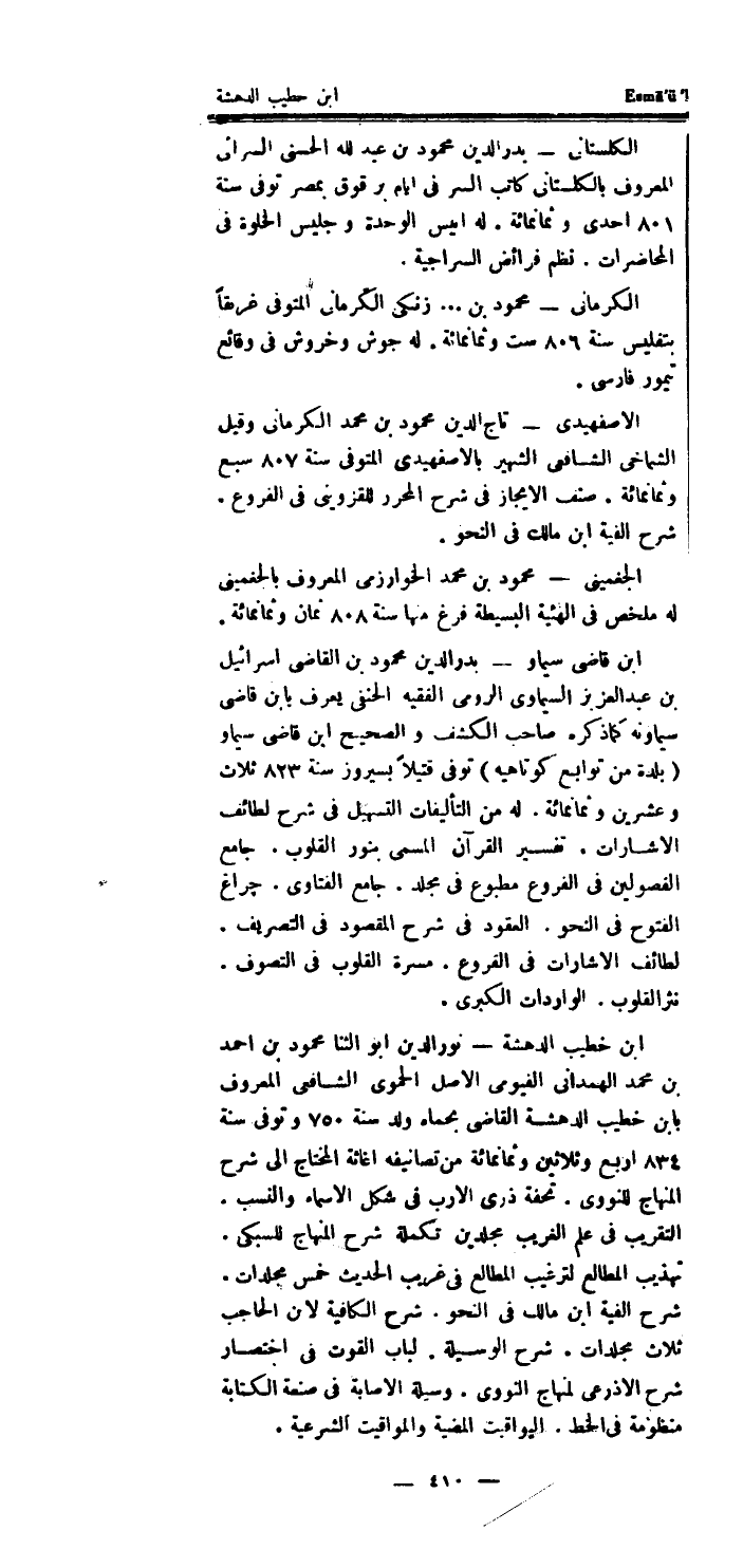 الْكرْمَانِي مَحْمُود بن..زنكى الْكرْمَانِي الْمُتَوفَّى غريقا بتفليس سنة 806 سِتّ وَثَمَانمِائَة.