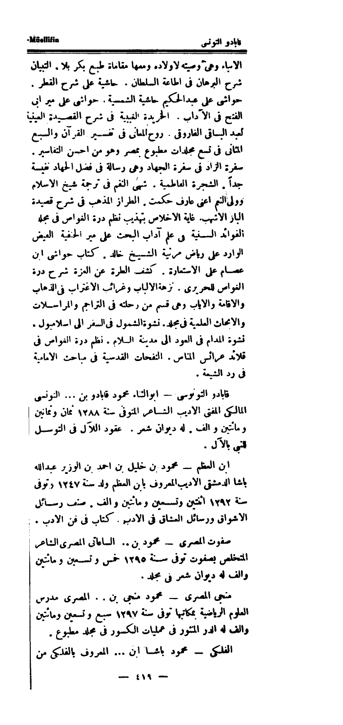 قابادو التونوسى أَبُو الثَّنَاء مَحْمُود قابادو بن..التونسى المالكى الْمُفْتى الاديب الشَّاعِر الْمُتَوفَّى سنة 1288 ثَمَان وَثَمَانِينَ وَمِائَتَيْنِ والف.