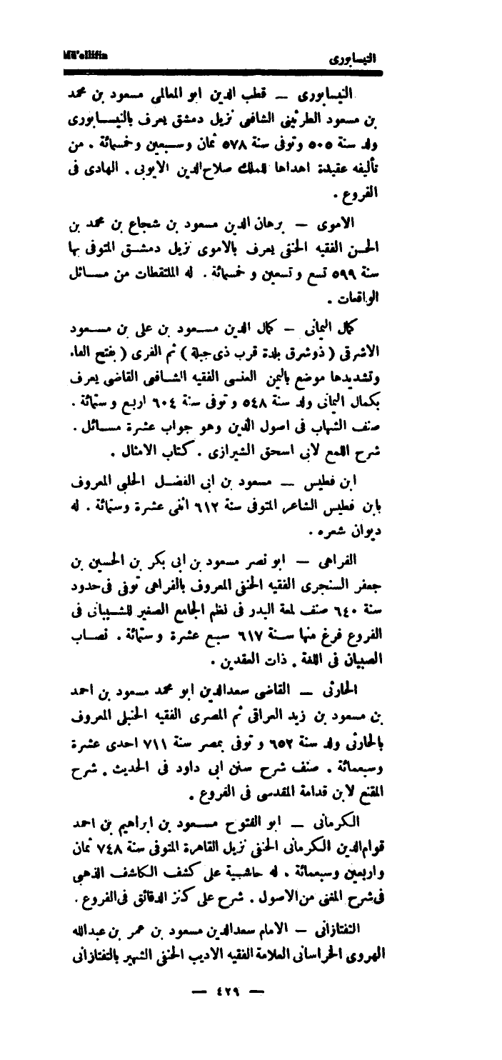 التفتازانى - الامام سعد الدَّين مَسْعُود بن عمر بن عبد الله الْهَرَوِيّ الْخُرَاسَانِي الْعَلامَة الْفَقِيه الاديب الْحَنَفِيّ الشهير بالتفتازانى