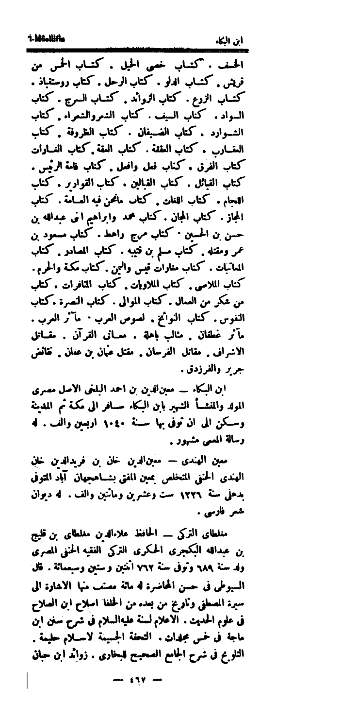 معِين الْهِنْدِيّ معِين الدَّين خَان بن فريد الدَّين خَان الْهِنْدِيّ الْحَنَفِيّ المتخلص بِمعين الْمُفْتى بشاهجهان آبان الْمُتَوفَّى بدهلى سنة 1226 سِتّ وَعشْرين وَمِائَتَيْنِ والف.
