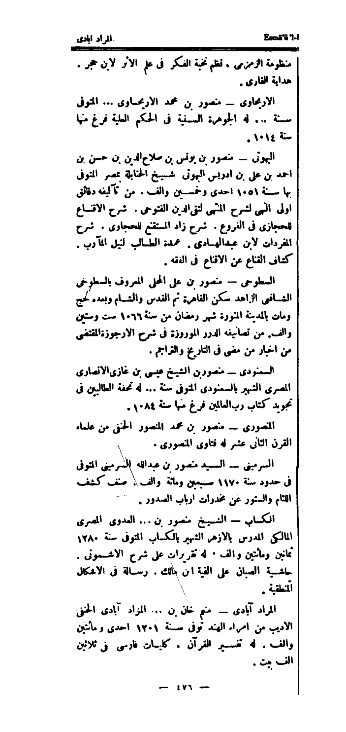 الكساب الشَّيْخ مَنْصُور بن..الْعَدْوى المصرى المالكى الْمدرس بالازهر الشهير بالكساب الْمُتَوفَّى سنة 1280 ثَمَانِينَ وَمِائَتَيْنِ والف.