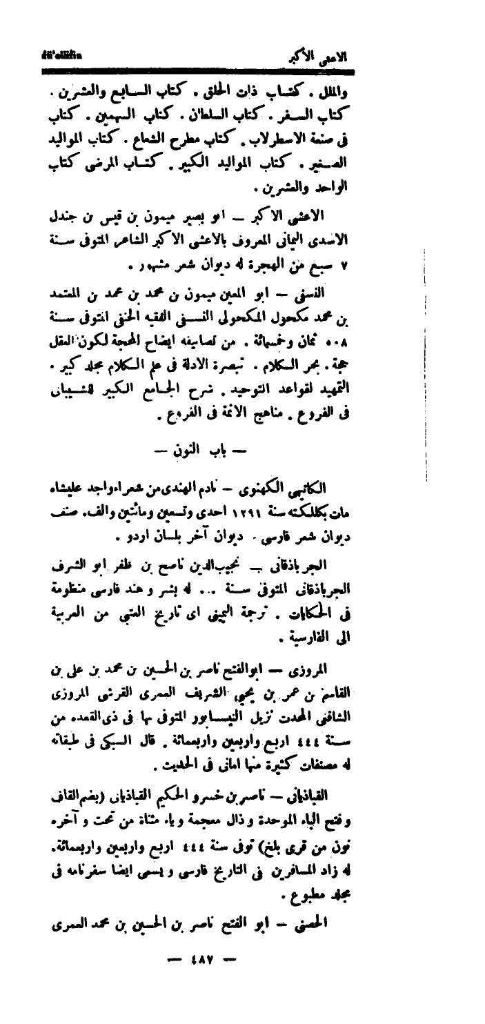القباذيانى نَاصِر بن خسرو الْحَكِيم القباذيانى (بِضَم الْقَاف وَفتح الْبَاء الْمُوَحدَة وذال مُعْجمَة وياء مثناة من تَحت وَآخره نون من قرى بَلخ) توفى سنة 444 ارْبَعْ واربعين واربعمائة.