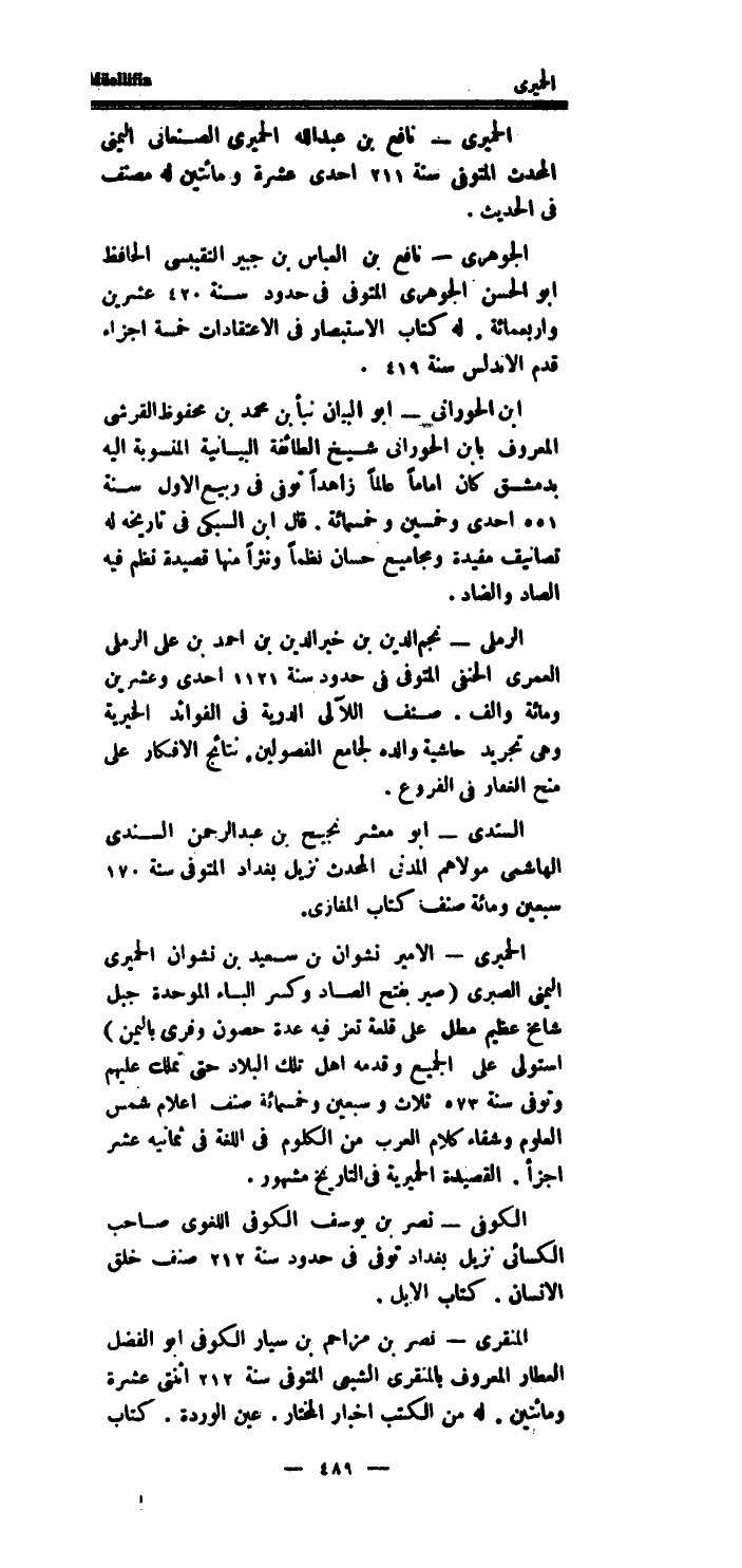 الحميرى نَافِع بن عبد الله الحميرى الصنعانى الْيُمْنَى الْمُحدث الْمُتَوفَّى سنة 211 احدى عشرَة وَمِائَتَيْنِ لَهُ مُصَنف فِي الحَدِيث.