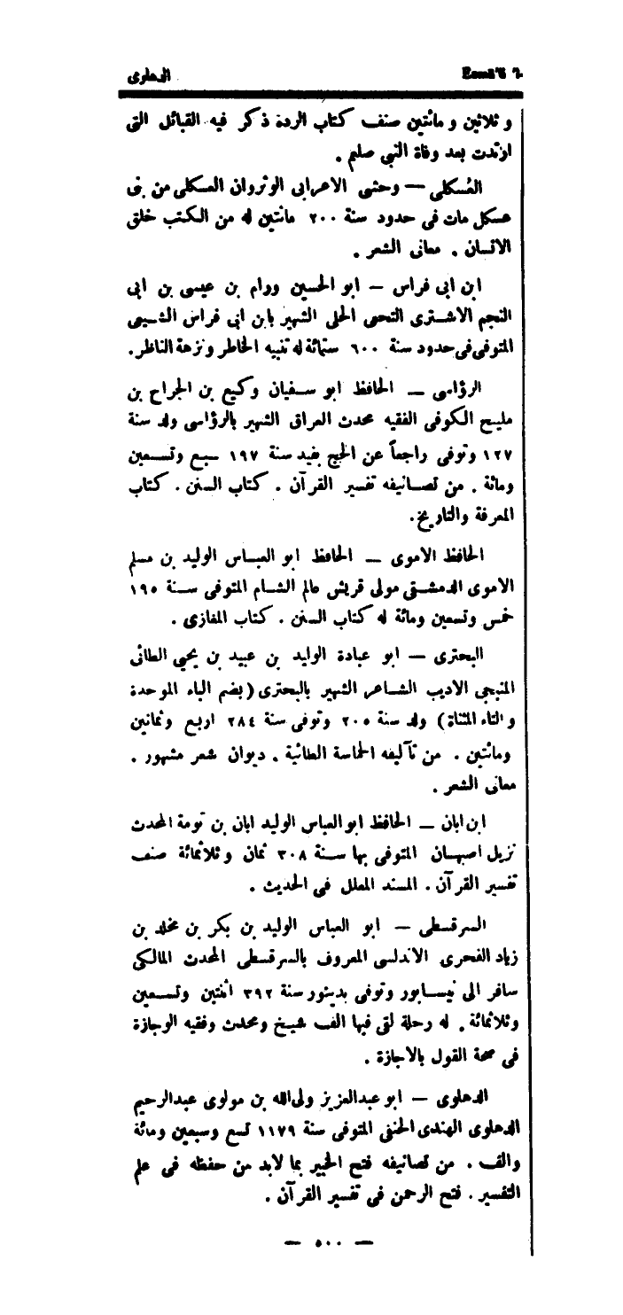 وَثَلَاثِينَ وَمِائَتَيْنِ صنف كتاب الرده ذكر فِيهِ الْقَبَائِل الَّتِى ارْتَدَّت بعد وَفَاة النَّبِي - صلى الله عليه وسلم -.