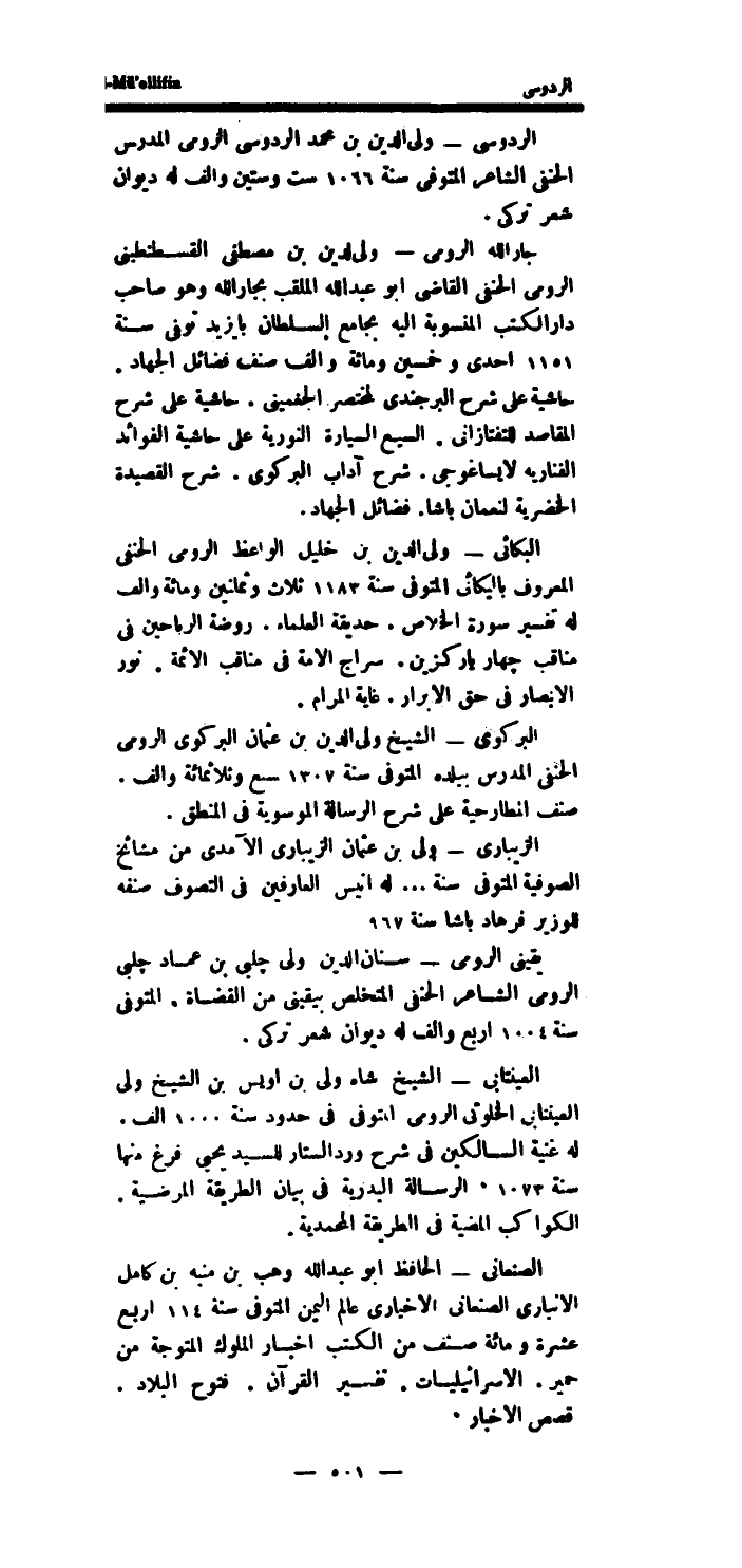 البركوى الشَّيْخ ولى الدَّين بن عُثْمَان البركوى الرُّومِي الْحَنَفِيّ الْمدرس بِبَلَدِهِ الْمُتَوفَّى سنة 1307 سبع وثلاثمائة والف.