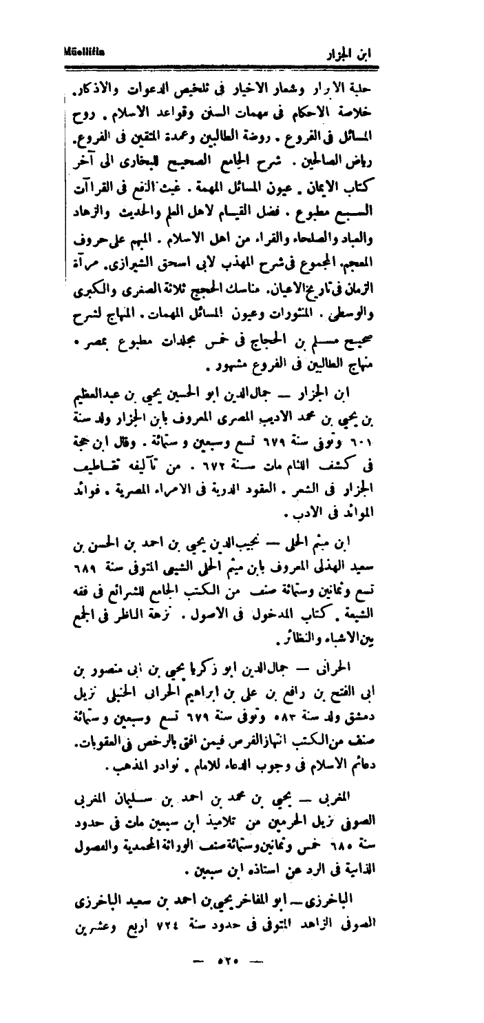الحرانى جمال الدَّين أَبُو زَكَرِيَّا يحيى بن ابى مَنْصُور بن ابى الْفَتْح بن رَافع بن على بن ابراهيم الحرانى الحنبلى نزيل دمشق ولد سنة 583 وَتوفى سنة 679 تسع وَسبعين وسِتمِائَة صنف من الْكتب انتهاز الفرص فِيمَن افتى بالرخص فِي الْعُقُوبَات.
