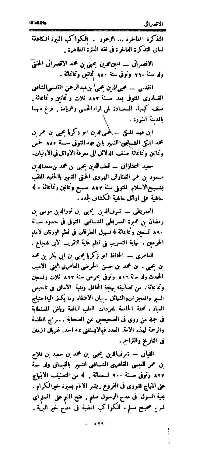 الاقصرائى امين الدَّين يحيى بن مُحَمَّد الاقصرائى الْحَنَفِيّ ولد سنة 790 وَتوفى سنة 880 ثَمَانِينَ وَثَمَانمِائَة.