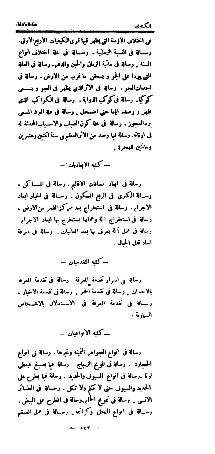 كتبه الابعاديات رِسَالَة فِي ابعاد مسافات الاقاليم.