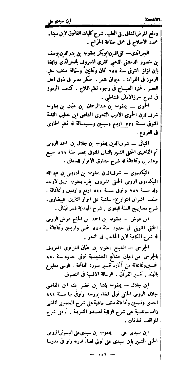 الحموى يَعْقُوب بن عبد الرحمان بن عُثْمَان بن يَعْقُوب شرف الدَّين الحموى الاديب النَّحْوِيّ الشَّافِعِي ابْن خطيب القلعة الْمُتَوفَّى سنة 774 ارْبَعْ وَسبعين وَسَبْعمائة لَهُ نظم الحاوى فِي الْفُرُوع.