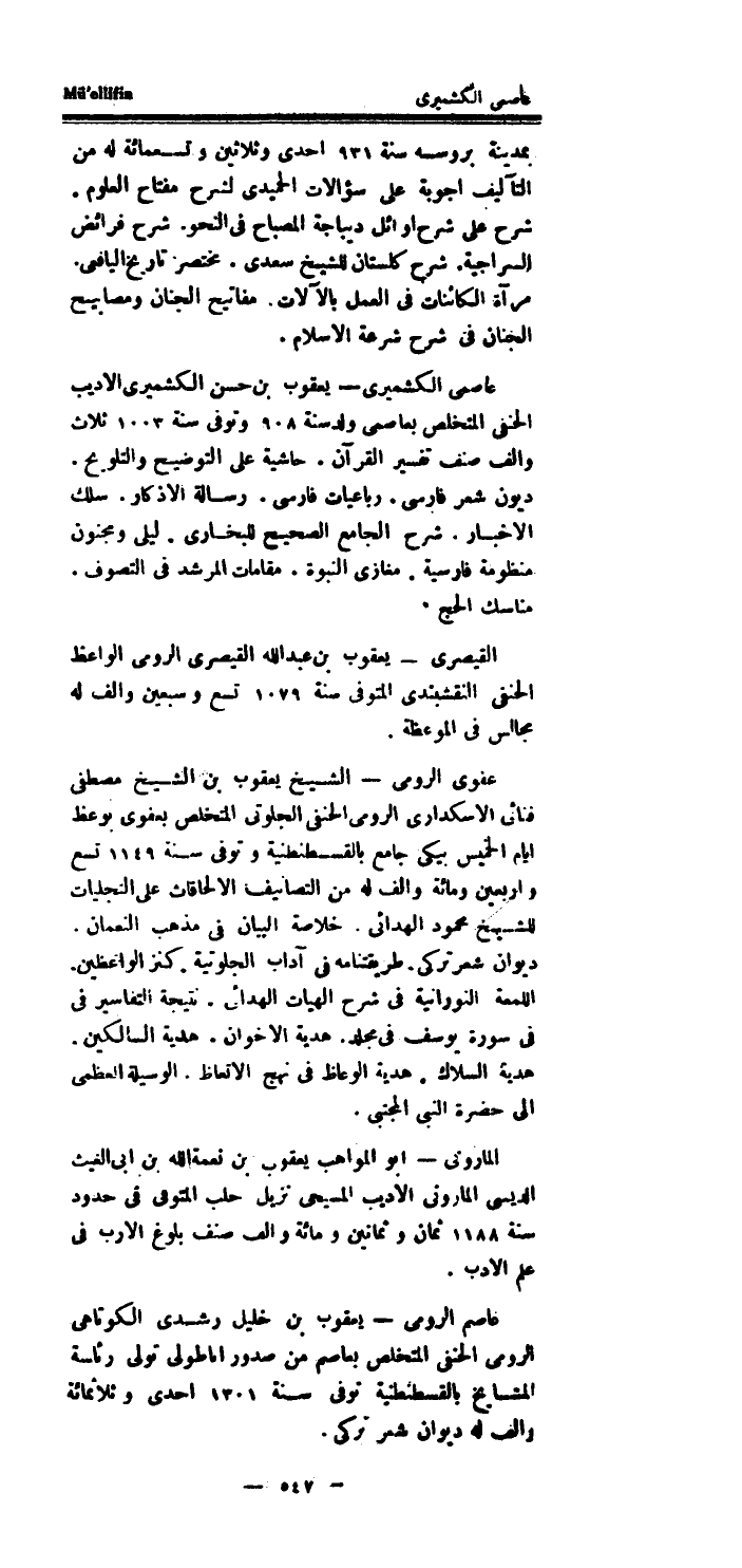 عاصمي الكشميري يَعْقُوب بن حسن الكشميري الاديب الْحَنَفِيّ المتخلص بعاصمى ولد سنة 908 وَتوفى سنة 1003 ثَلَاث والف صنف تَفْسِير الْقُرْآن.