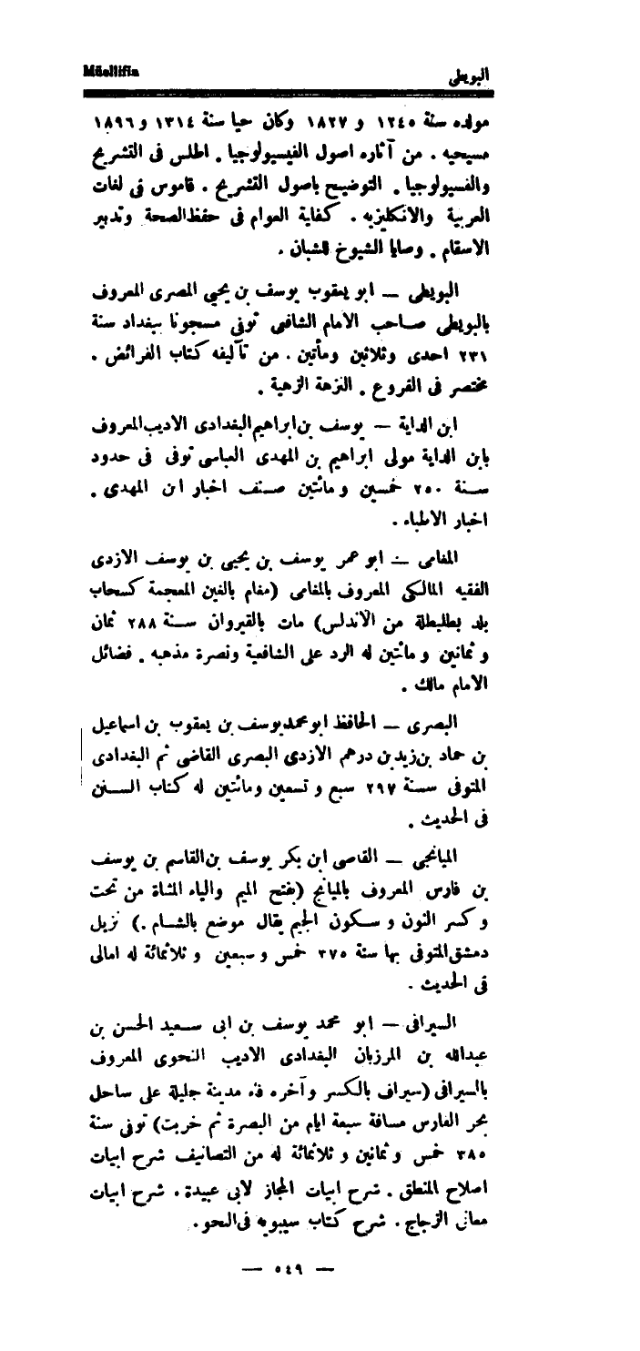 البويطى ابو يَعْقُوب يُوسُف بن يحيى المصرى الْمَعْرُوف بالبويطى صَاحب الامام الشَّافِعِي توفى مسجونا بِبَغْدَاد سنة 231 احدى وَثَلَاثِينَ ومأتين.