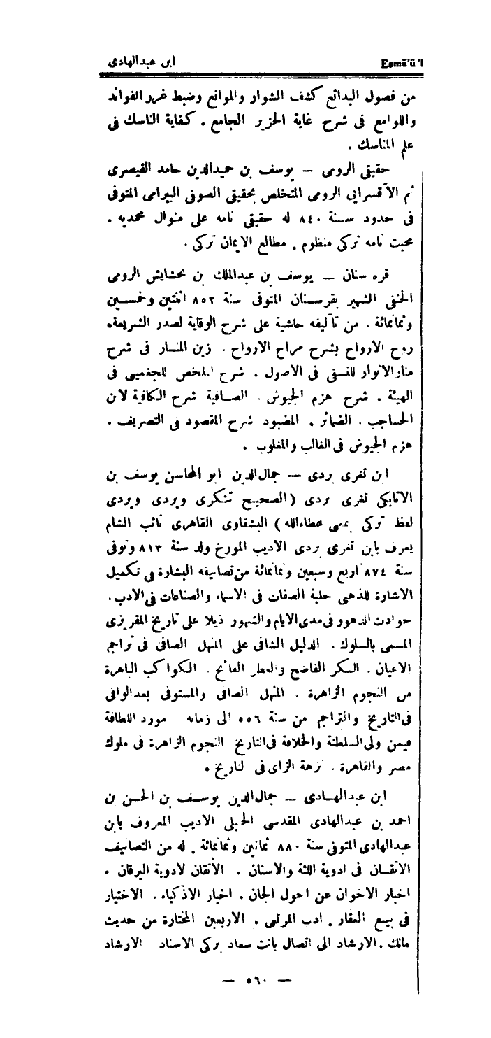 ابْن عبد الْهَادِي جمال الدَّين يُوسُف بن الْحسن بن احْمَد بن عبد الْهَادِي الْمَقْدِسِي الحبلى الاديب الْمَعْرُوف بِابْن عبد الْهَادِي الْمُتَوفَّى سنة 880 ثَمَانِينَ وَثَمَانمِائَة.