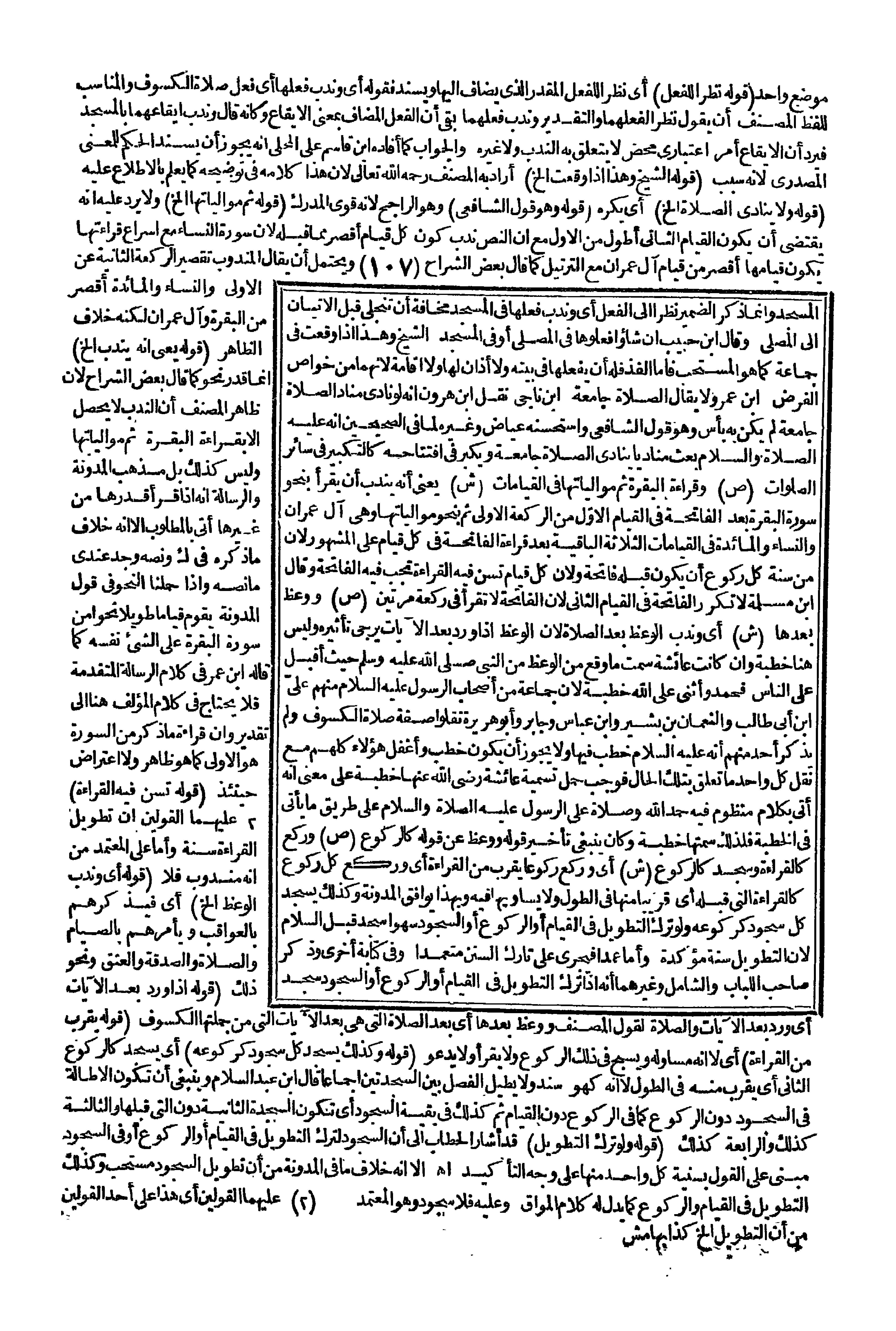 ـــــــــــــــــــــــــــــQمَوْضِعٍ وَاحِدٍ. (قَوْلُهُ نَظَرًا لِلْفِعْلِ) أَيْ: نَظَرًا لِلْفِعْلِ الْمُقَدَّرِ الَّذِي يُضَافُ إلَيْهَا وَيُسْنَدُ، فَقَوْلُهُ أَيْ: وَنُدِبَ فِعْلُهَا أَيْ: فِعْلُ صَلَاةِ الْكُسُوفِ، وَالْمُنَاسِبُ لِلَفْظِ الْمُصَنِّفِ أَنْ يَقُولَ: نَظَرًا لِفِعْلِهِمَا، وَالتَّقْدِيرُ: وَنُدِبَ فِعْلُهُمَا. بَقِيَ أَنَّ الْفِعْلَ الْمُضَافَ بِمَعْنَى الْإِيقَاعِ وَكَأَنَّهُ قَالَ: وَنُدِبَ إيقَاعُهُمَا بِالْمَسْجِدِ فَيُرَدُّ أَنَّ الْإِيقَاعَ أَمْرٌ اعْتِبَارِيٌّ مَحْضٌ لَا يَتَعَلَّقُ بِهِ النَّدْبُ وَلَا غَيْرُهُ. وَالْجَوَابُ - كَمَا أَفَادَهُ ابْنُ قَاسِمٍ عَلَى الْمَحَلِّيِّ - أَنَّهُ يَجُوزُ أَنْ يُسْنَدَ الْحُكْمُ لِلْمَعْنَى الْمَصْدَرِيِّ؛ لِأَنَّهُ سَبَبٌ. (قَوْلُهُ الشَّيْخُ وَهَذَا إذَا وَقَعَتْ إلَخْ) أَرَادَ بِهِ الْمُصَنِّفَ - رَحِمَهُ اللَّهُ تَعَالَى -؛ لِأَنَّ هَذَا كَلَامُهُ فِي تَوْضِيحِهِ كَمَا يُعْلَمُ بِالِاطِّلَاعِ عَلَيْهِ. (قَوْلُهُ وَلَا يُنَادَى: الصَّلَاةَ. . . إلَخْ) أَيْ: يُكْرَهُ (قَوْلُهُ وَهُوَ قَوْلُ الشَّافِعِيِّ) وَهُوَ الرَّاجِحُ؛ لِأَنَّهُ قَوِيُّ الْمَدْرَكِ. (قَوْلُهُ ثُمَّ مُوَالَيَاتِهَا. . . إلَخْ) وَلَا يَرُدُّ عَلَيْهِ أَنَّهُ يَقْتَضِي أَنْ يَكُونَ الْقِيَامُ الثَّانِي أَطْوَلَ مِنْ الْأَوَّلِ مَعَ أَنَّ النَّصَّ نَدَبَ كَوْنَ كُلِّ قِيَامٍ أَقْصَرَ مِمَّا قَبْلَهُ؛ لِأَنَّ سُورَةَ النِّسَاءِ مَعَ إسْرَاعِ قِرَاءَتِهَا يَكُونُ قِيَامُهَا أَقْصَرَ مِنْ قِيَامِ آلِ عِمْرَانَ مَعَ التَّرْتِيلِ، كَمَا قَالَ بَعْضُ الشُّرَّاحِ. وَيُحْتَمَلُ أَنْ يُقَالَ: الْمَنْدُوبُ تَقْصِيرُ الرَّكْعَةِ الثَّانِيَةِ عَنْ الْأُولَى، وَالنِّسَاءُ وَالْمَائِدَةُ أَقْصَرُ مِنْ الْبَقَرَةِ وَآلِ عِمْرَانَ، لَكِنَّهُ خِلَافُ الظَّاهِرِ.
