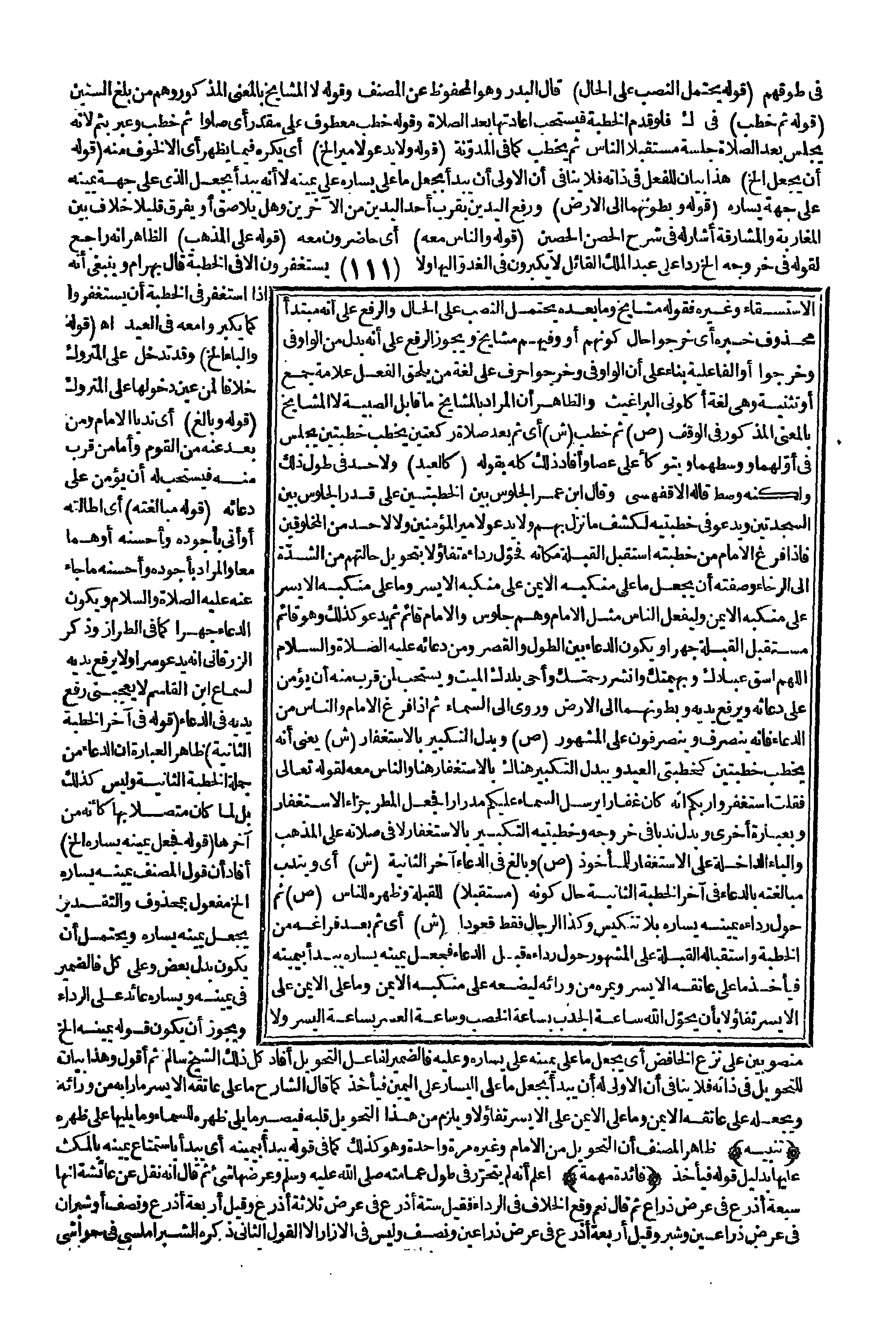 الِاسْتِسْقَاءِ وَغَيْرِهِ. فَقَوْلُهُ: مَشَايِخُ وَمَا بَعْدَهُ يَحْتَمِلُ النَّصْبَ عَلَى الْحَالِ وَالرَّفْعَ عَلَى أَنَّهُ مُبْتَدَأٌ مَحْذُوفٌ خَبَرُهُ، أَيْ: خَرَجُوا حَالَ كَوْنِهِمْ، أَوْ وَفِيهِمْ مَشَايِخُ، وَيَجُوزُ الرَّفْعُ عَلَى أَنَّهُ بَدَلٌ مِنْ الْوَاوِ فِي وَخَرَجُوا، أَوْ الْفَاعِلِيَّةُ بِنَاءً عَلَى أَنَّ الْوَاوَ فِي: وَخَرَجُوا حَرْفٌ عَلَى لُغَةِ مَنْ يُلْحِقُ الْفِعْلَ عَلَامَةَ جَمْعٍ أَوْ تَثْنِيَةٍ، وَهِيَ لُغَةُ: أَكَلُونِي الْبَرَاغِيثُ. وَالظَّاهِرُ أَنَّ الْمُرَادَ بِالْمَشَايِخِ مَا قَابَلَ الصِّبْيَةَ لَا الْمَشَايِخُ بِالْمَعْنَى الْمَذْكُورِ فِي الْوَقْفِ.